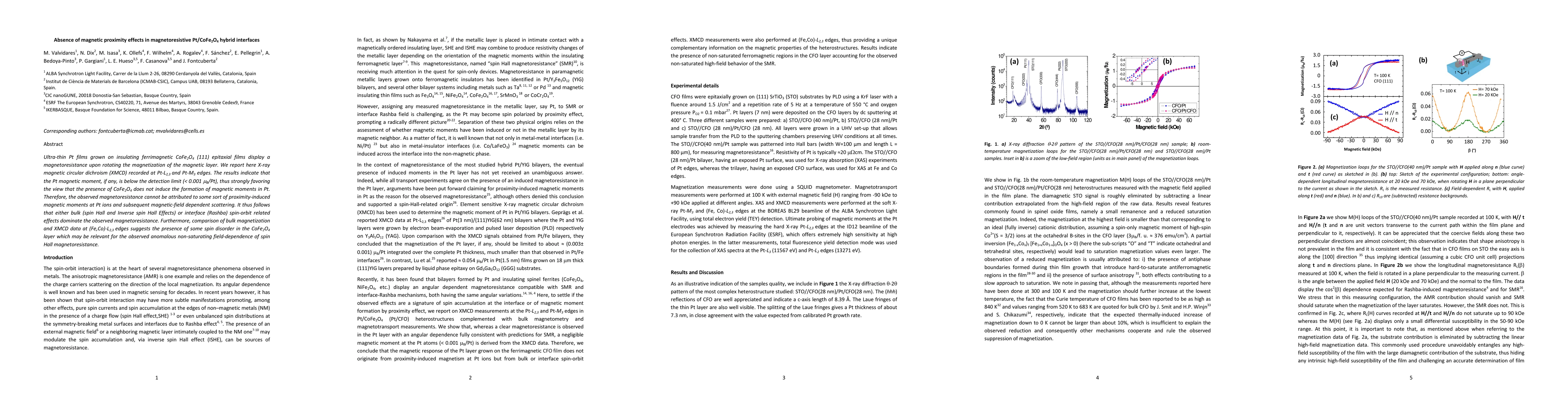 This study investigates ultra-thin Pt films on CoFe2O4, finding no magnetic proximity effects as Pt magnetic moments are undetectable. The observed magnetoresistance in Pt/CoFe2O4 interfaces is likely due to bulk or interface spin-orbit effects rather than induced magnetic moments.