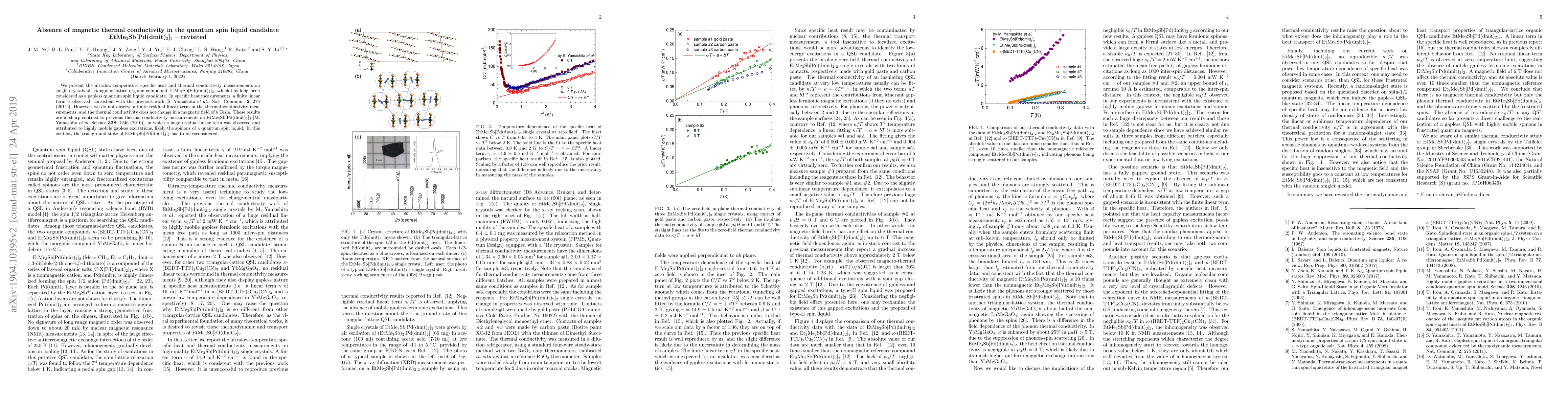 This study revisits EtMe$_3$Sb[Pd(dmit)$_2$]$_2$, a candidate for a gapless quantum spin liquid, finding no residual linear term in thermal conductivity and no change under magnetic fields, contrasting previous reports of significant thermal conductivity attributed to spinons. The findings suggest a reevaluation of the compound's ground state.
