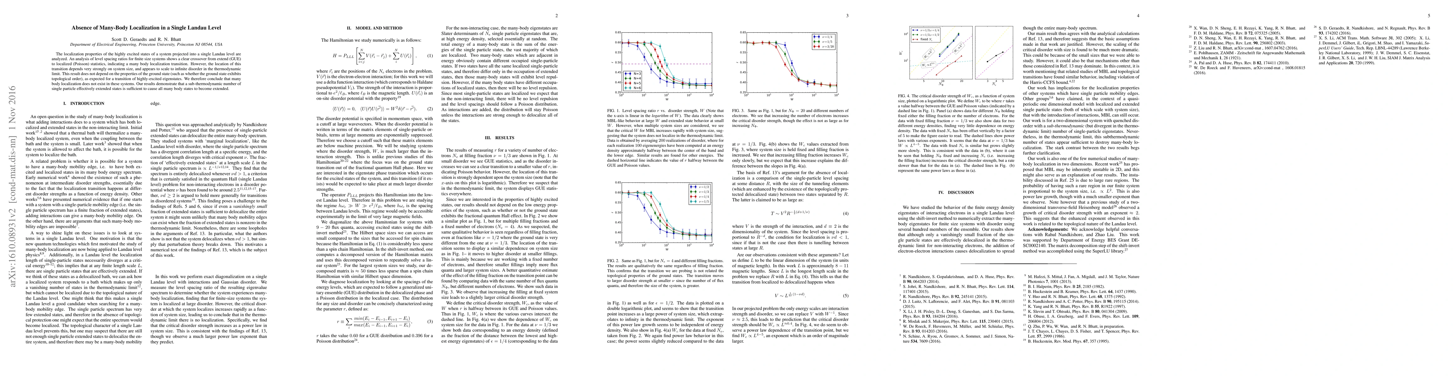 The study reveals that many-body localization does not occur in systems projected into a single Landau level, as the transition location scales to infinite disorder in the thermodynamic limit. This finding indicates that even a small number of extended single-particle states can lead to extended many-body states.