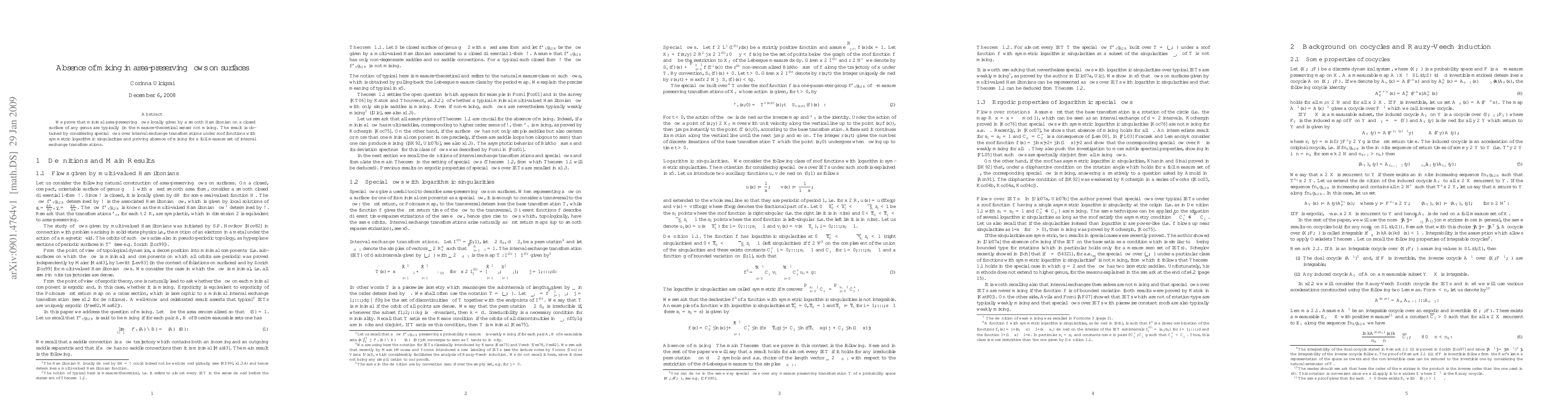 This paper demonstrates that typical minimal area-preserving flows on closed surfaces of any genus, described by smooth Hamiltonians, do not exhibit mixing behavior. The authors achieve this by analyzing special flows over interval exchange transformations with symmetric logarithmic singularities.