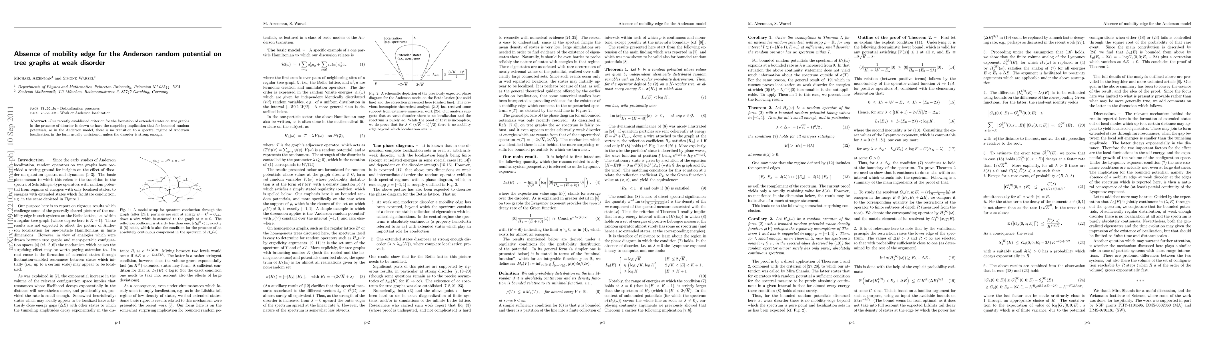 Summary: Research reveals that bounded random potentials on tree graphs do not exhibit the conventional Anderson localization transition, implying extended states form even at weak disorder levels, challenging traditional localization theories.