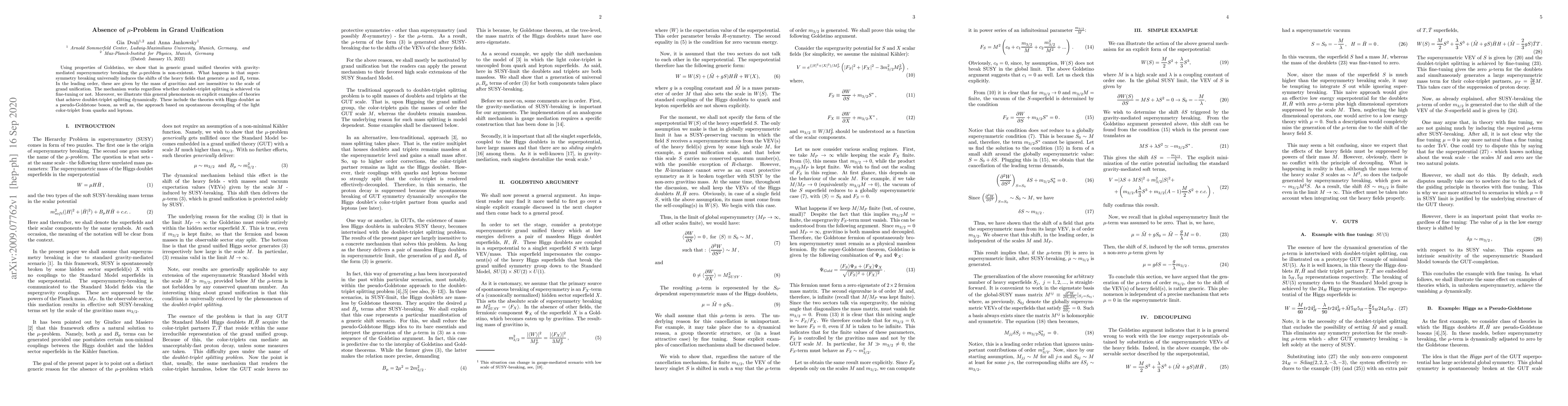 This paper demonstrates that the $\mu$-problem in grand unified theories with gravity-mediated supersymmetry breaking is absent due to universal shifts in heavy fields induced by supersymmetry breaking. These shifts are primarily driven by the gravitino mass and are independent of the grand unification scale.