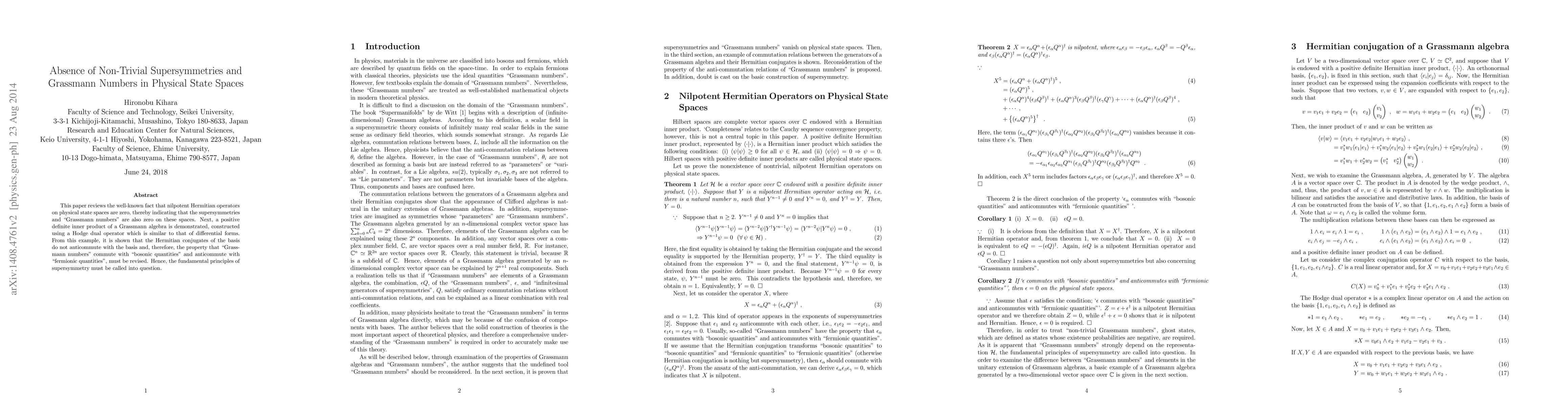 This paper reviews the well-known fact that nilpotent Hermitian operators on physical state spaces are zero, thereby indicating that the supersymmetries and "Grassmann numbers" are also zero on these spaces. Next, a positive definite inner product of a Grassmann algebra is demonstrated, constructed using a Hodge dual operator which is similar to that of differential forms. From this example, it is shown that the Hermitian conjugates of the basis do not anticommute with the basis and, therefore, the property that "Grassmann numbers" commute with "bosonic quantities" and anticommute with "fermionic quantities", must be revised. Hence, the fundamental principles of supersymmetry must be called into question.