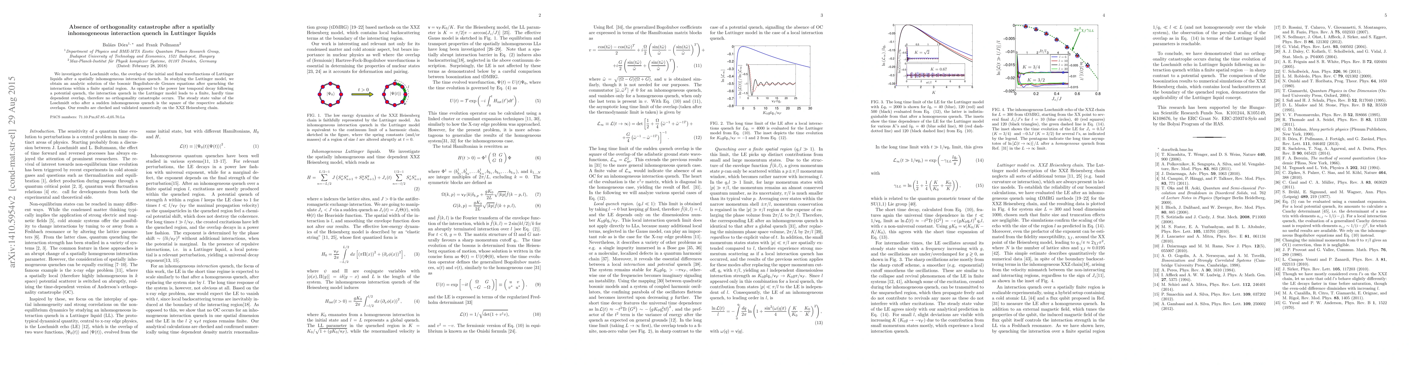 This paper investigates the Loschmidt echo in Luttinger liquids following a spatially inhomogeneous interaction quench, finding an analytic solution that shows no orthogonality catastrophe. Unlike potential quenches, the interaction quench results in a finite, time-independent overlap, validated numerically on the XXZ Heisenberg chain.
