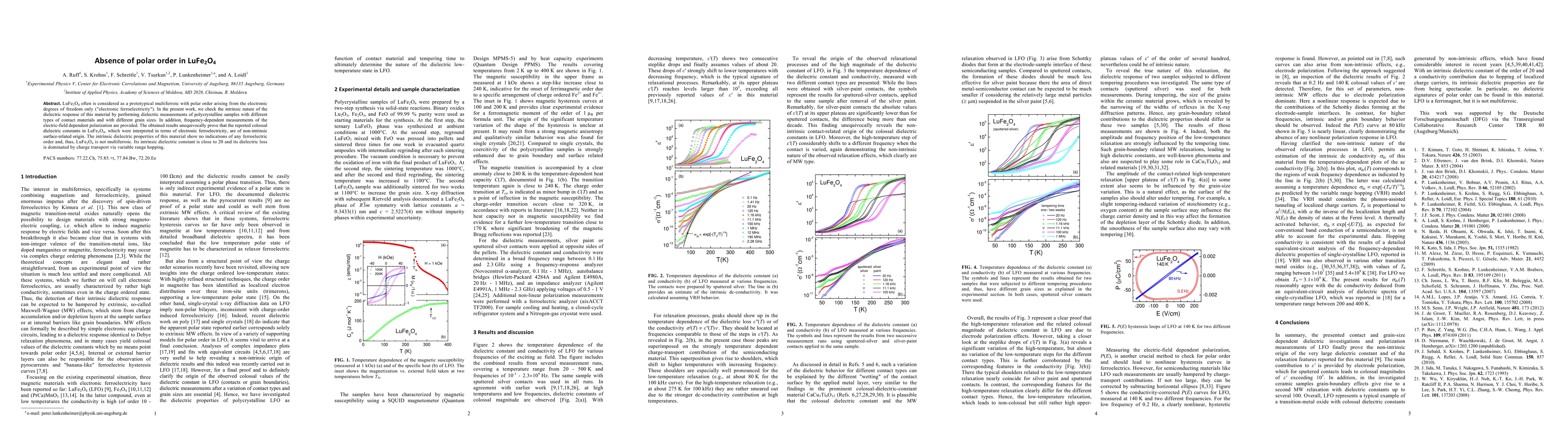 This study reveals that LuFe2O4 lacks intrinsic polar order, refuting the notion of electronic ferroelectricity. Dielectric measurements show no evidence of intrinsic ferroelectricity, indicating that reported high dielectric constants are due to surface effects rather than intrinsic ferroelectric behavior.