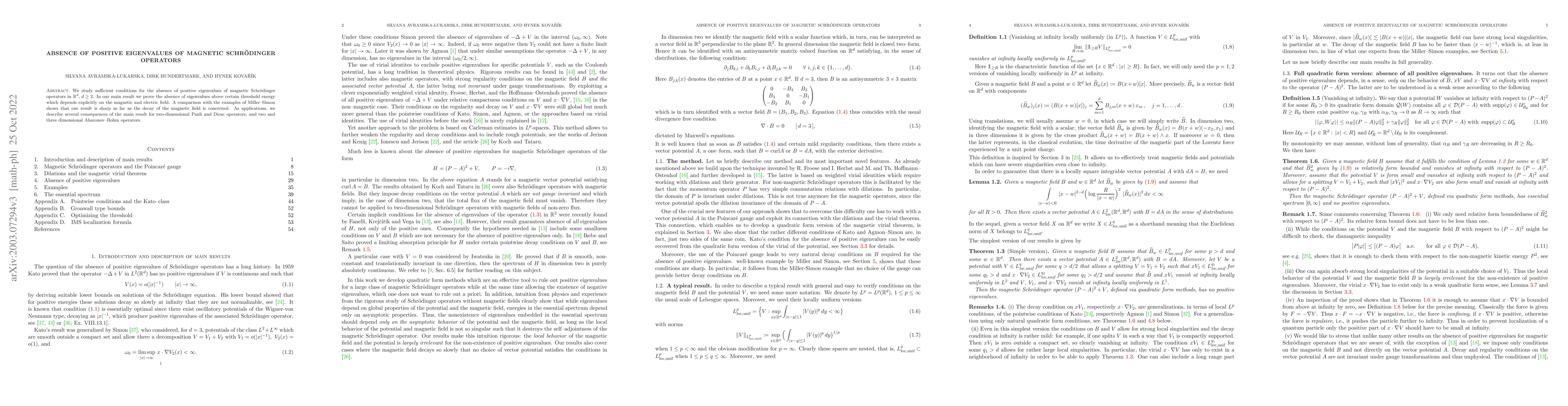 We study sufficient conditions for the absence of positive eigenvalues of magnetic Schr\"odinger operators in $\mathbb{R}^d,\, d\geq 2$. In our main result we prove the absence of eigenvalues above certain threshold energy which depends explicitly on the magnetic and electric field. A comparison with the examples of Miller--Simon shows that our result is sharp as far as the decay of the magnetic field is concerned. As applications, we describe several consequences of the main result for two-dimensional Pauli and Dirac operators, and two and three dimensional Aharonov--Bohm operators.