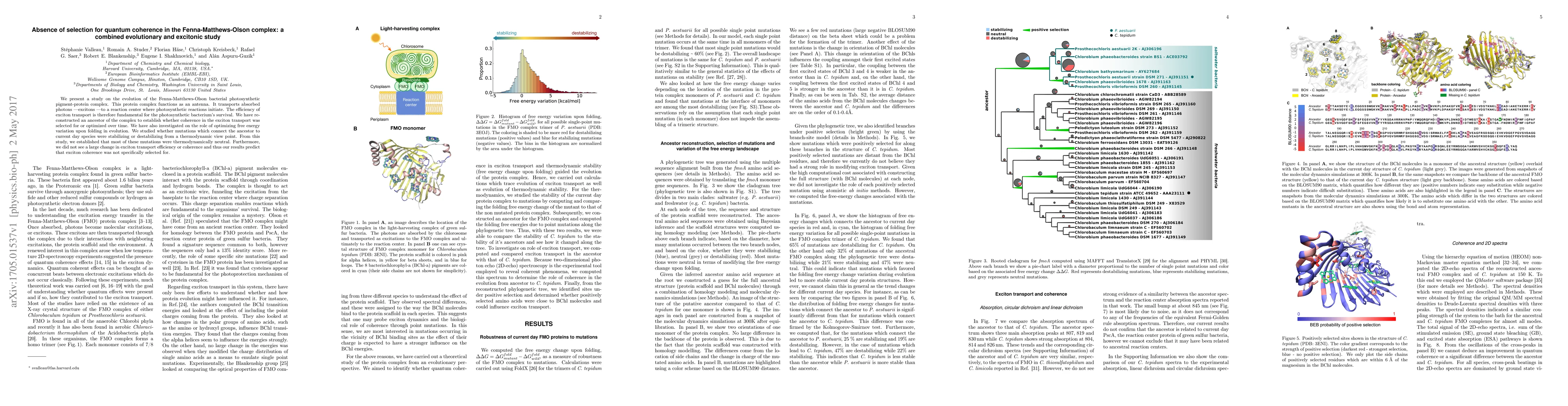 A study on the Fenna-Matthews-Olson complex found that quantum coherence in exciton transport was not specifically selected for; instead, mutations were thermodynamically neutral, indicating no significant optimization of exciton transport efficiency.