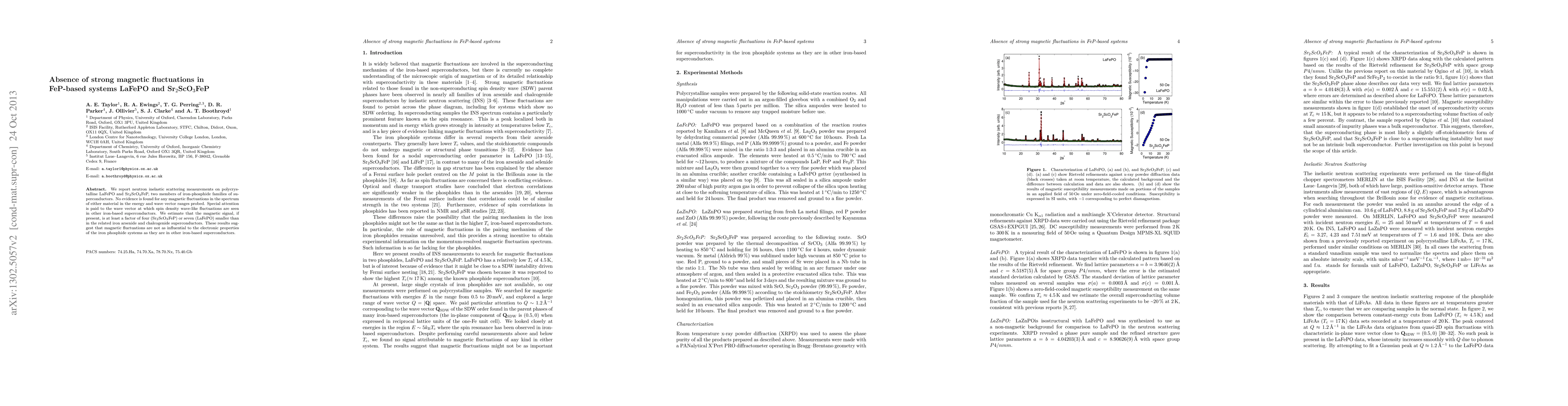 Neutron inelastic scattering reveals no magnetic fluctuations in LaFePO and Sr2ScO3FeP, indicating these iron phosphide superconductors differ from other iron-based superconductors where magnetic fluctuations play a significant role. The magnetic signal is estimated to be significantly weaker by factors of four and seven, respectively.
