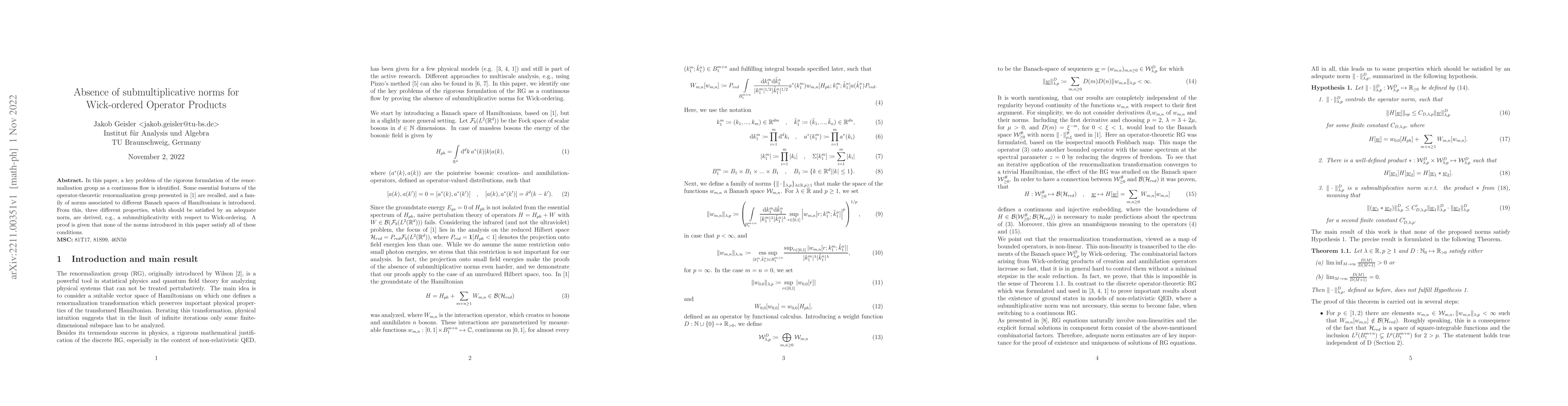 This paper identifies a fundamental issue in rigorously formulating the renormalization group as a continuous flow, demonstrating that no norm associated with the introduced Banach spaces of Hamiltonians satisfies the required submultiplicative property for Wick-ordered operator products.