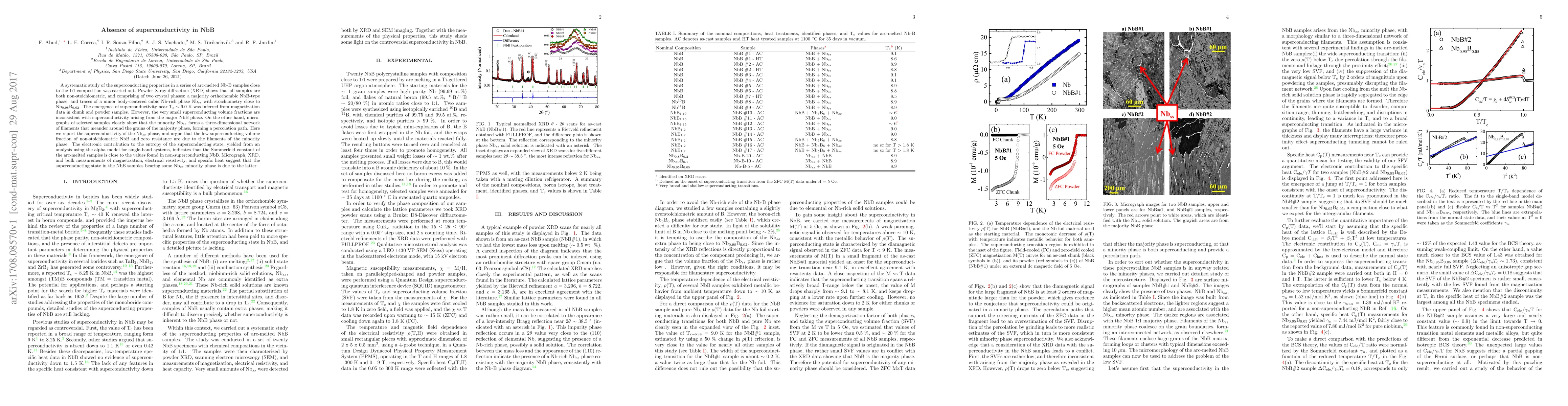The study examines Nb-B samples and finds no superconductivity from the major NbB phase, attributing observed superconductivity near 9.0 K to a minor, Nb-rich phase (Nb_ss) forming a percolation network within the sample. The research concludes that superconductivity in these non-stoichiometric NbB samples is due to the minority Nb_ss phase, supported by micrograph, XRD, and various physical property measurements.