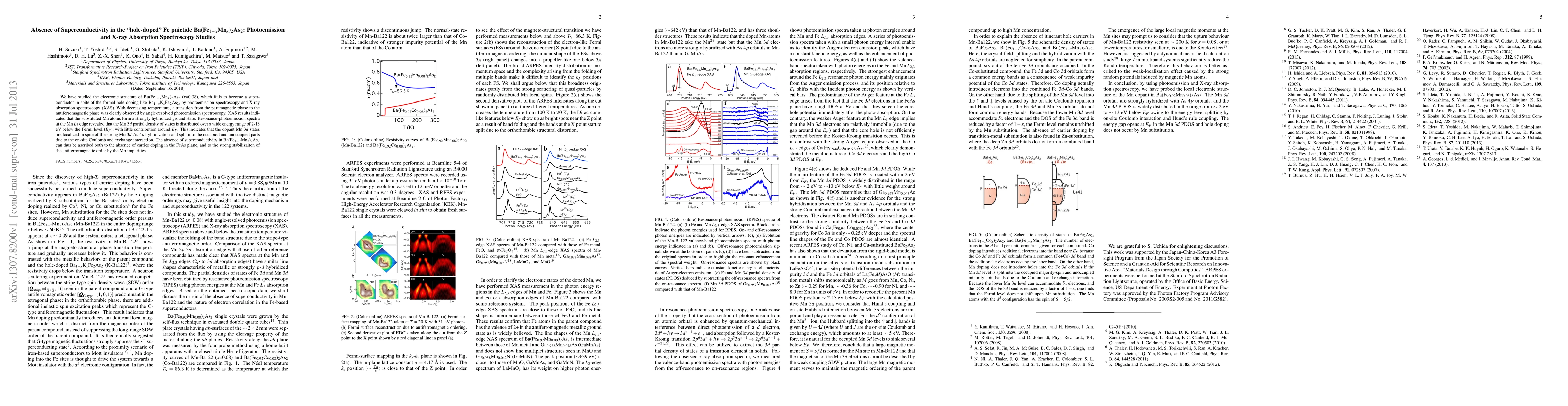 We have studied the electronic structure of Ba(Fe$_{1-x}$Mn$_{x}$)$_{2}$As$_{2}$ ($x$=0.08), which fails to become a superconductor in spite of the formal hole doping like Ba$_{1-x}$K$_{x}$Fe$_{2}$As$_{2}$, by photoemission spectroscopy and X-ray absorption spectroscopy (XAS). With decreasing temperature, a transition from the paramagnetic phase to the antiferromagnetic phase was clearly observed by angle-resolved photoemission spectroscopy. XAS results indicated that the substituted Mn atoms form a strongly hybridized ground state. Resonance-photoemission spectra at the Mn $L_{3}$ edge revealed that the Mn 3d partial density of states is distributed over a wide energy range of 2-13 eV below the Fermi level ($E_F$), with little contribution around $E_F$. This indicates that the dopant Mn 3$d$ states are localized in spite of the strong Mn 3d-As $4p$ hybridization and split into the occupied and unoccupied parts due to the on-site Coulomb and exchange interaction. The absence of superconductivity in Ba(Fe$_{1-x}$Mn$_{x}$)$_{2}$As$_{2}$ can thus be ascribed both to the absence of carrier doping in the FeAs plane, and to the strong stabilizaiton of the antiferromagnetic order by the Mn impurities.