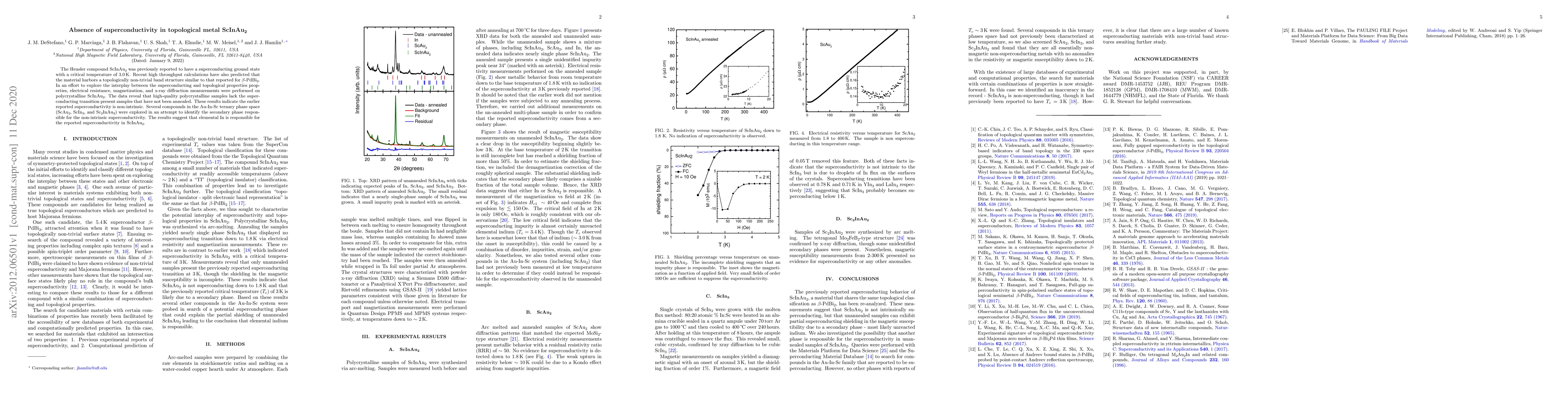 Research on ScInAu2 reveals that earlier reported superconductivity is non-intrinsic and caused by elemental In, contradicting previous predictions of a topological band structure.