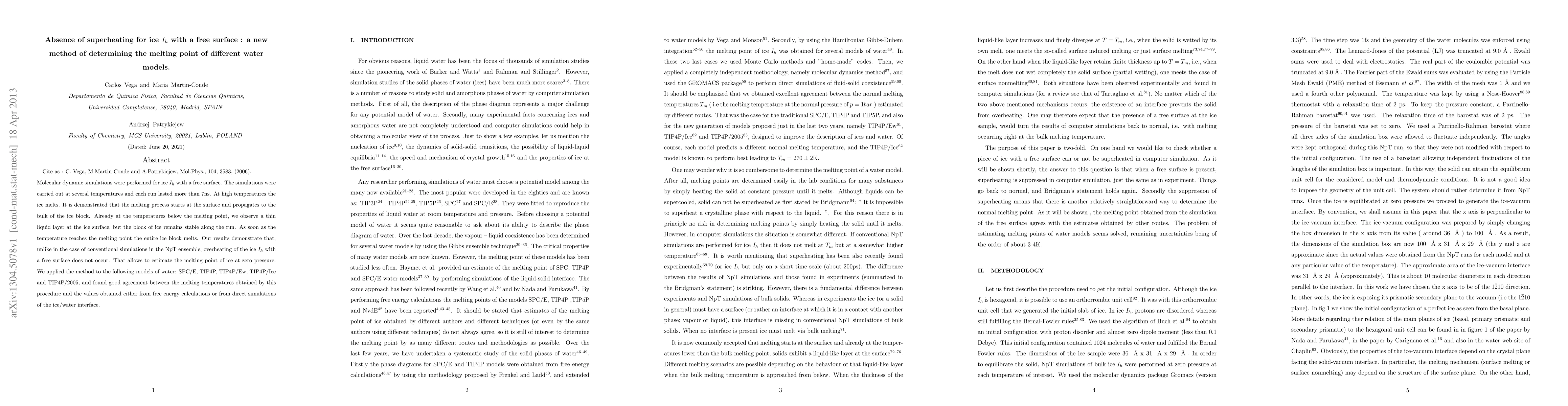 This paper reports molecular dynamic simulations showing that ice Ih with a free surface does not superheat, allowing accurate determination of its melting point at zero pressure. The study applied this method to various water models, finding consistent melting temperatures with existing calculations.