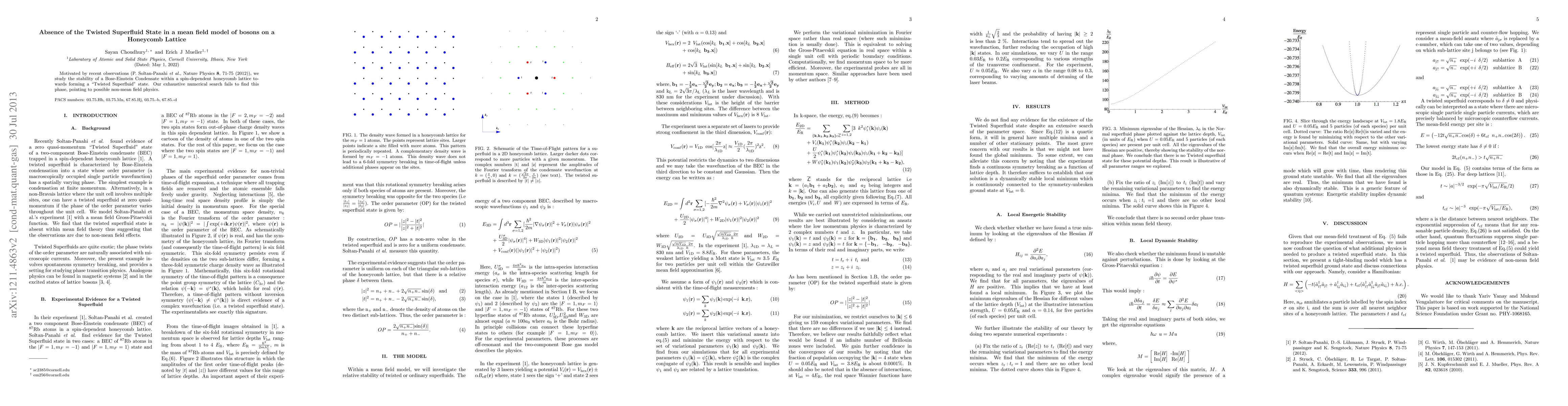 Summary: Despite recent observations suggesting the existence of a "Twisted Superfluid" state, a mean field model of bosons on a honeycomb lattice shows no stability towards this phase, indicating potential non-mean field effects.