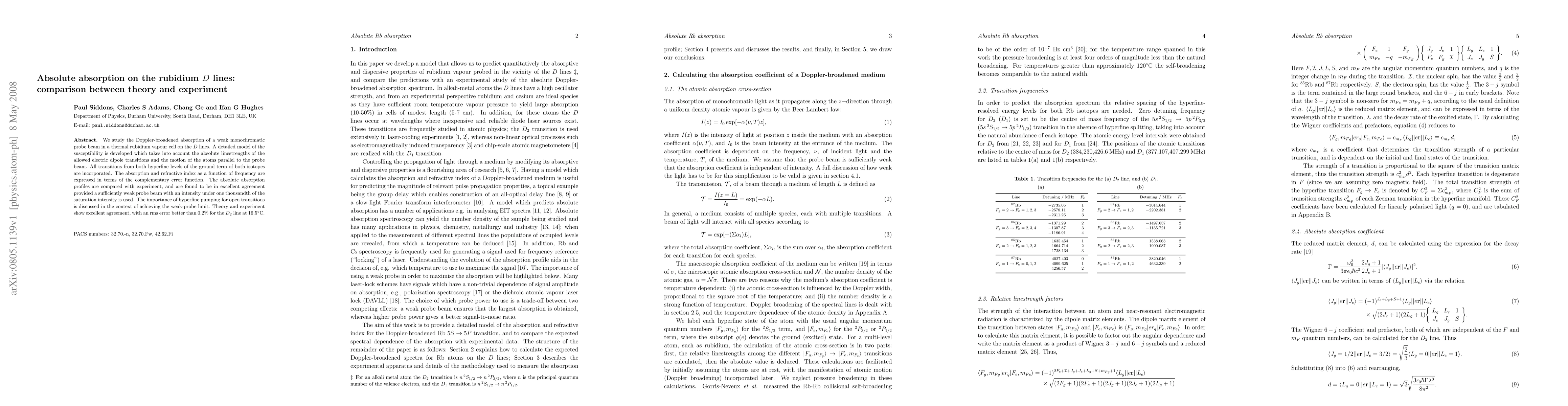 This paper compares theoretical models of Doppler-broadened absorption in rubidium vapour with experimental results, finding excellent agreement for weak probe beams. The model incorporates hyperfine transitions and uses the complementary error function to describe absorption and refractive index.