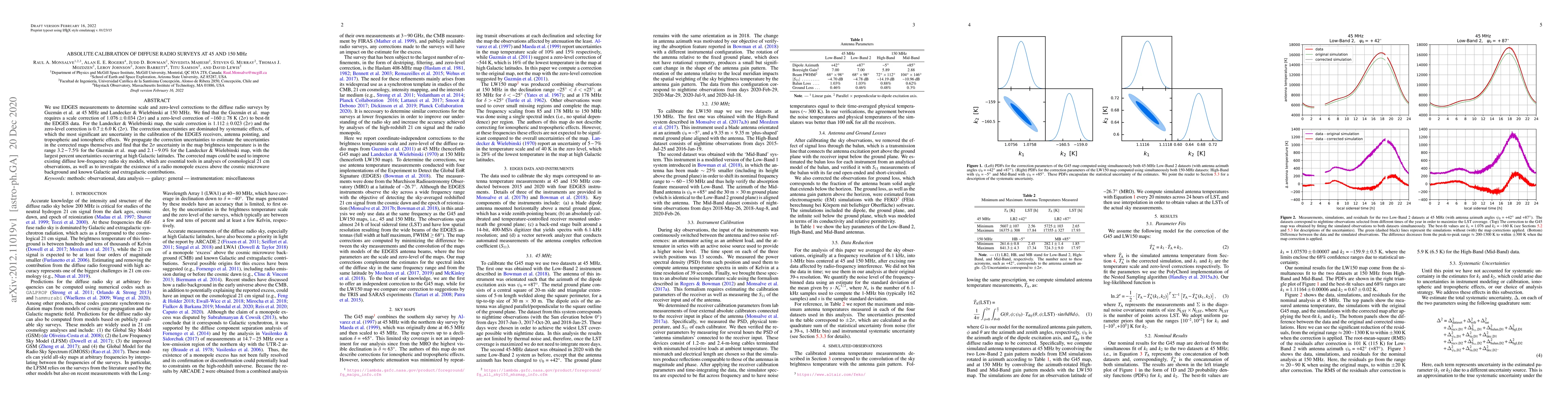 We use EDGES measurements to determine scale and zero-level corrections to the diffuse radio surveys by Guzm\'an et al. at $45$ MHz and Landecker & Wielebinski at $150$ MHz. We find that the Guzm\'an et al. map requires a scale correction of $1.076 \pm 0.034$ ($2\sigma$) and a zero-level correction of $-160 \pm 78$ K ($2\sigma$) to best-fit the EDGES data. For the Landecker & Wielebinski map, the scale correction is $1.112 \pm 0.023$ ($2\sigma$) and the zero-level correction is $0.7 \pm 6.0$ K ($2\sigma$). The correction uncertainties are dominated by systematic effects, of which the most significant are uncertainty in the calibration of the EDGES receivers, antenna pointing, and tropospheric and ionospheric effects. We propagate the correction uncertainties to estimate the uncertainties in the corrected maps themselves and find that the $2\sigma$ uncertainty in the map brightness temperature is in the range $3.2-7.5\%$ for the Guzm\'an et al. map and $2.1-9.0\%$ for the Landecker & Wielebinski map, with the largest percent uncertainties occurring at high Galactic latitudes. The corrected maps could be used to improve existing diffuse low-frequency radio sky models, which are essential tools in analyses of cosmological $21$ cm observations, as well as to investigate the existence of a radio monopole excess above the cosmic microwave background and known Galactic and extragalactic contributions.