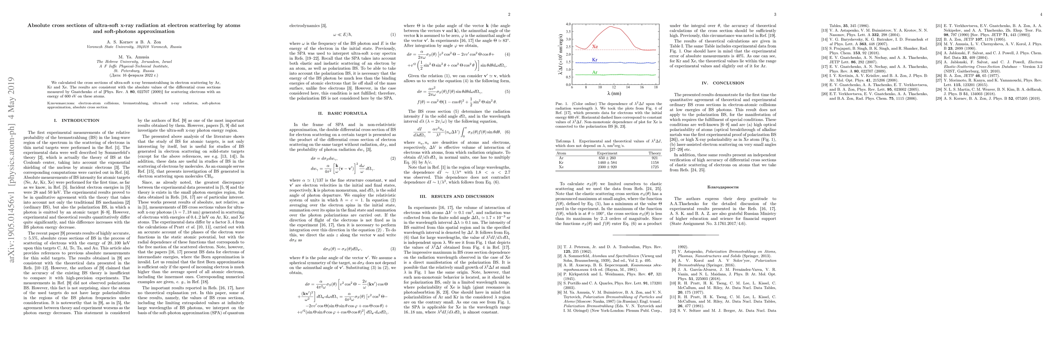 The cross sections of ultra-soft x-ray bremsstrahlung in at electron scattering by Ar, Kr and Xe are theoretically calculated. The results are consistent with the absolute values of the differential cross sections measured by Gnatchenko et al [Phys. Rev. A 80, 022707 (2009)] for scattering electrons with an energy of 600 eV on these atoms.