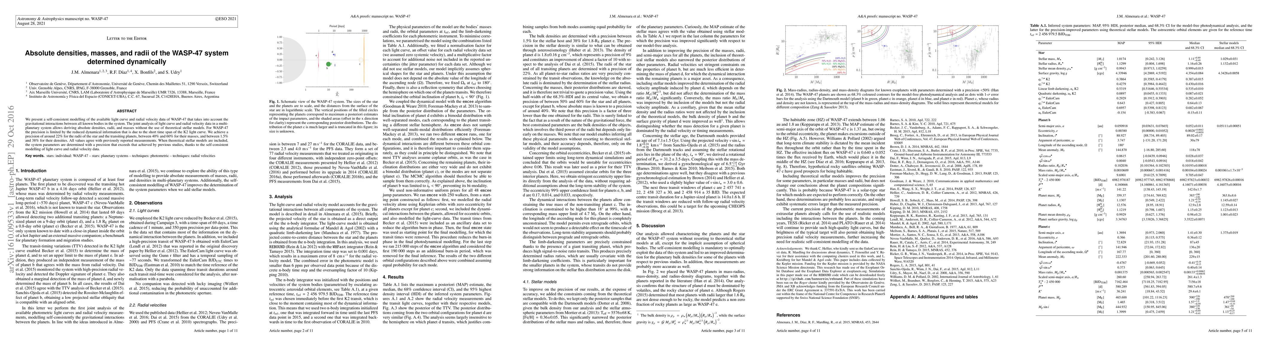 The research presents a self-consistent modelling of light curve and radial velocity data for the WASP-47 system, utilizing gravitational interactions between known bodies without theoretical stellar models initially, then incorporating them for improved precision.