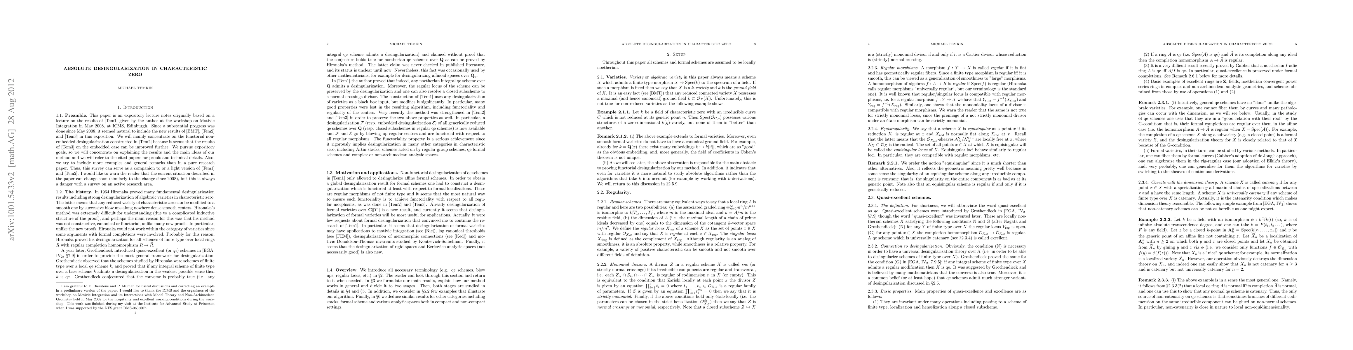 This paper surveys recent advancements in desingularization of quasi-excellent schemes in characteristic zero, focusing on examples and main ideas rather than detailed proofs. It is part of the conference proceedings for "Motivic integration and its interactions with model theory and non-archimedean geometry" (ICMS, May 2008).