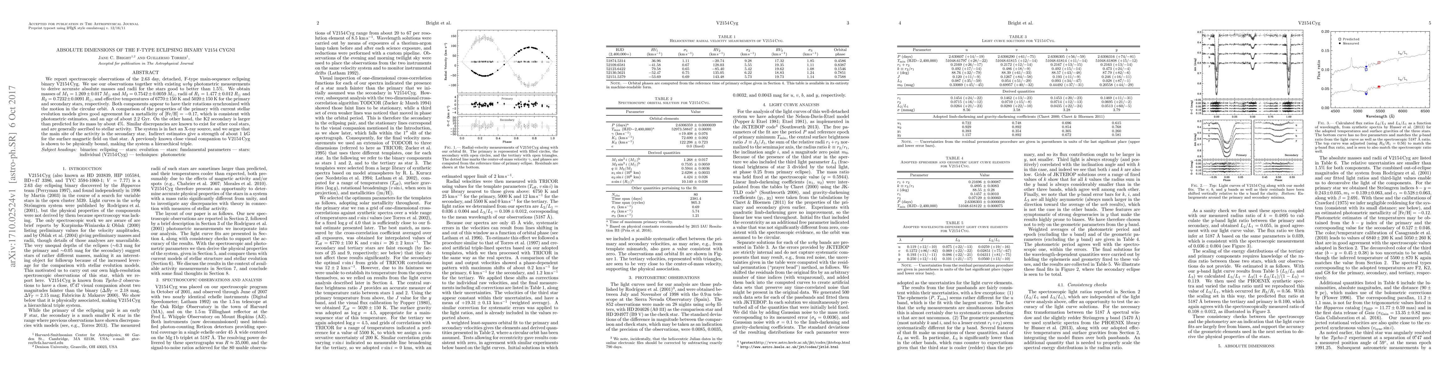 This paper reports spectroscopic and photometric observations of the F-type eclipsing binary V2154 Cygni, deriving precise absolute masses and radii for both stars, and finding the secondary star exhibits stellar activity possibly linked to its magnetic field. The system is also identified as a hierarchical triple.