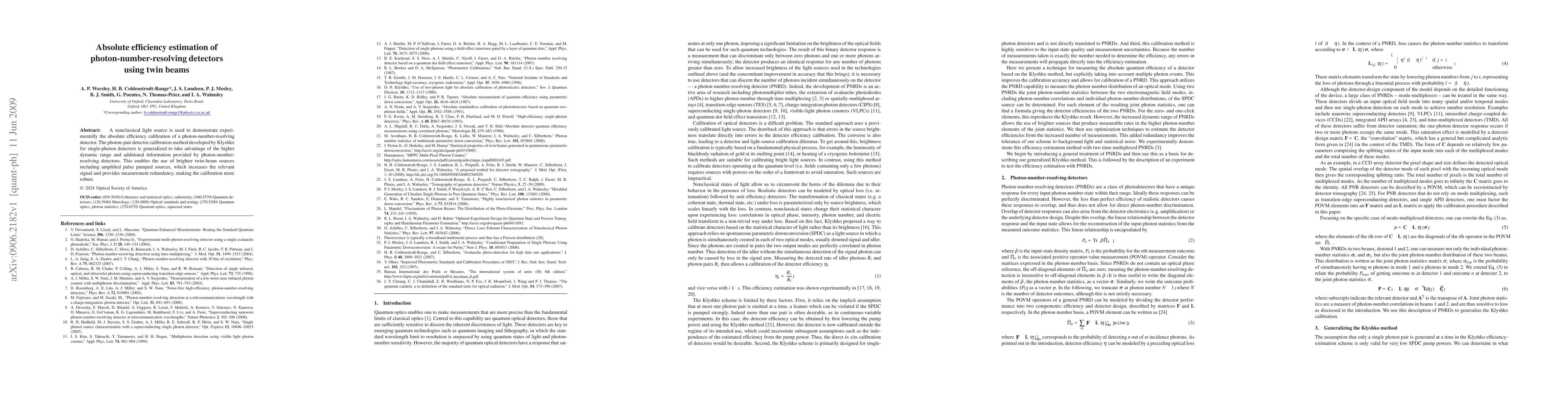 This paper presents an experimental method for calibrating photon-number-resolving detectors using twin beams, generalizing Klyshko’s technique to enhance efficiency and robustness. The use of brighter twin-beam sources increases signal and provides measurement redundancy.