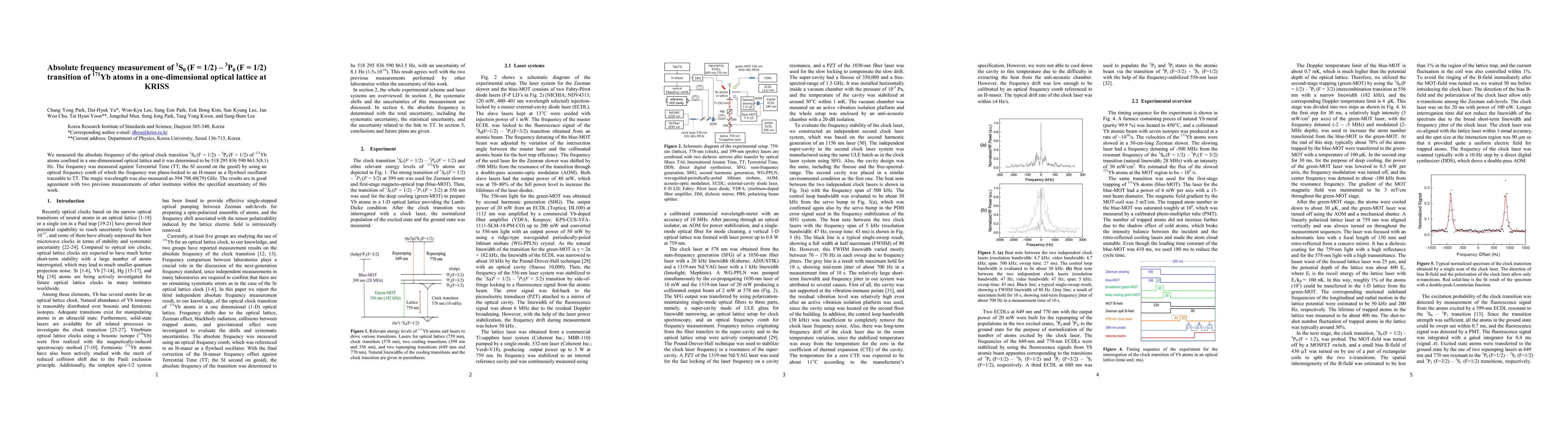 This paper reports the precise measurement of the absolute frequency for the 1S0 (F = 1/2) - 3P0 (F = 1/2) transition in 171Yb atoms in a one-dimensional optical lattice, yielding 518 295 836 590 863.5(8.1) Hz, and confirms the magic wavelength at 394 798.48(79) GHz, aligning well with previous measurements.