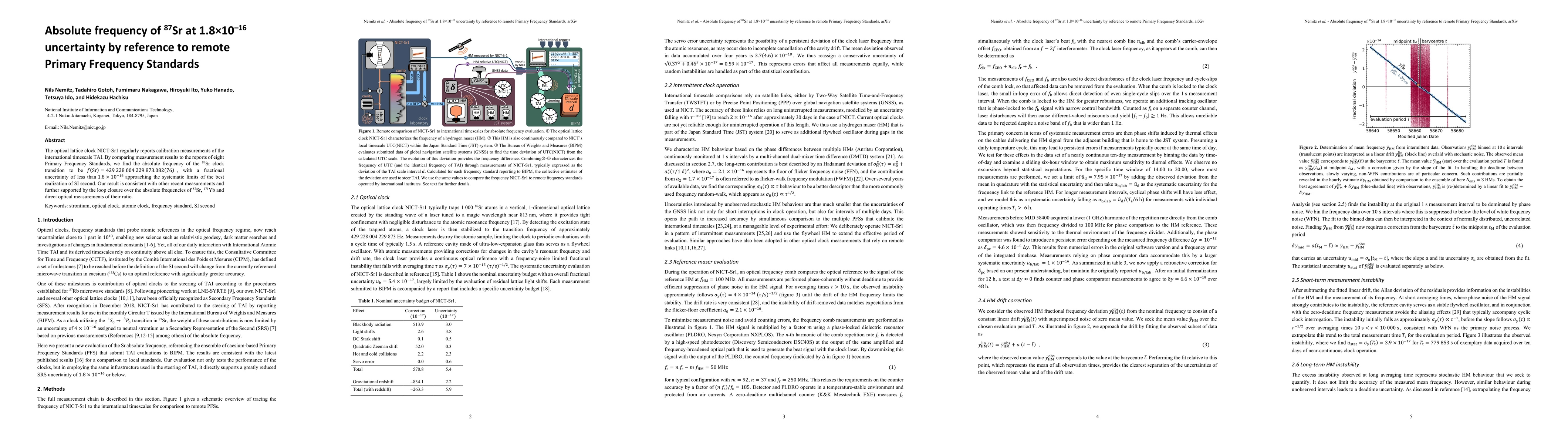 The optical lattice clock NICT-Sr1 regularly reports calibration measurements of the international timescale TAI. By comparing measurement results to the reports of eight Primary Frequency Standards, we find the absolute frequency of the $^{87}\mathrm{Sr}$ clock transition to be f(Sr)=$429\,228\,004\,229\,873.082(76)$, with a fractional uncertainty of less than 1.8x10$^{-16}$ approaching the systematic limits of the best realization of SI second. Our result is consistent with other recent measurements and further supported by the loop closure over the absolute frequencies of $^{87}\mathrm{Sr}$, $^{171}\mathrm{Yb}$ and direct optical measurements of their ratio.