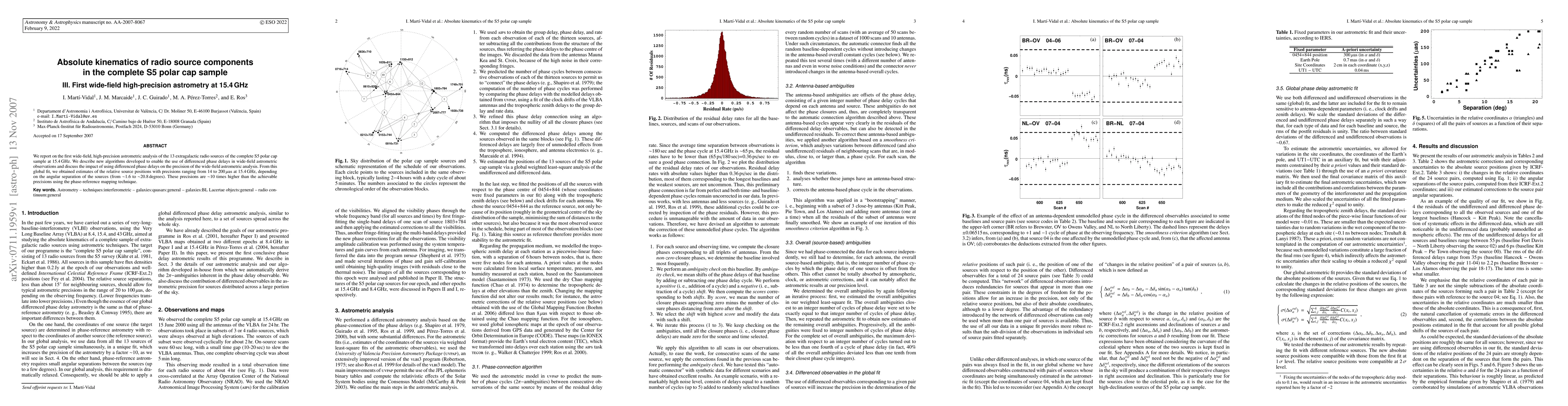 We report on the first wide-field, high-precision astrometric analysis of the 13 extragalactic radio sources of the complete S5 polar cap sample at 15.4 GHz. We describe new algorithms developed to enable the use of differenced phase delays in wide-field astrometric observations and discuss the impact of using differenced phase delays on the precision of the wide-field astrometric analysis. From this global fit, we obtained estimates of the relative source positions with precisions ranging from 14 to 200 $\mu$as at 15.4 GHz, depending on the angular separation of the sources (from $\sim$1.6 to $\sim$20.8 degrees). These precisions are $\sim$10 times higher than the achievable precisions using the phase-reference mapping technique.