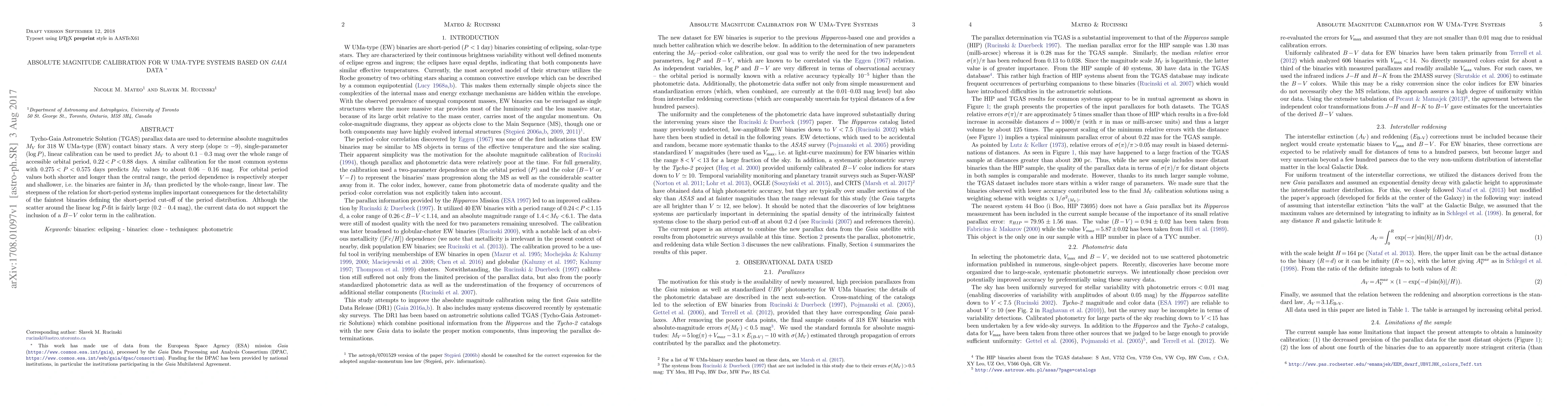 This paper calibrates the absolute magnitudes $M_V$ for 318 W UMa-type contact binary stars using Gaia TGAS parallax data, revealing a steep linear relationship with orbital period $\log{P}$. The calibration predicts $M_V$ values with an accuracy of 0.1 -- 0.3 mag across the accessible period range.