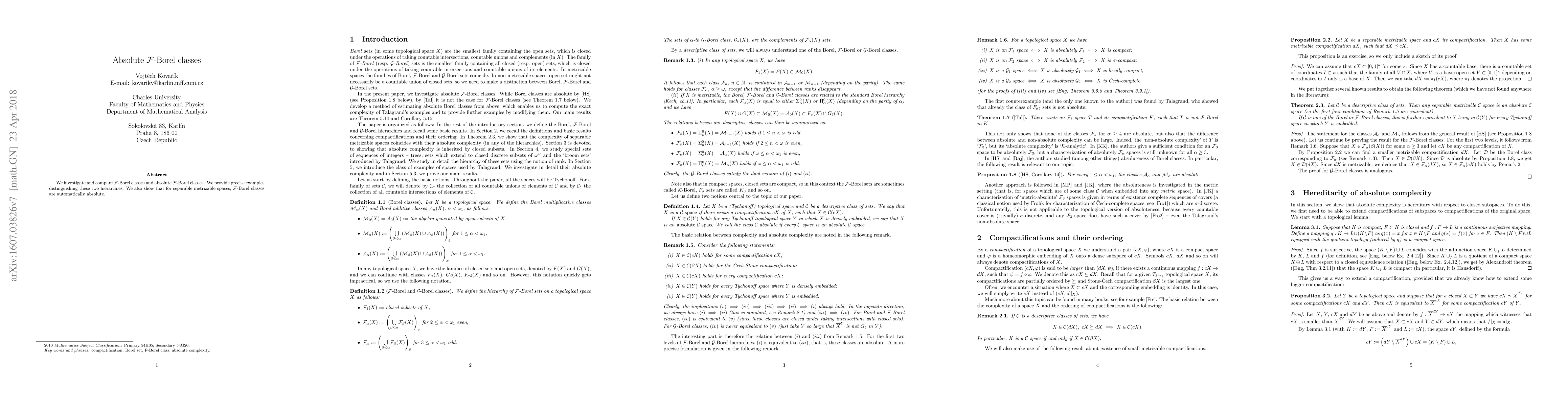 This paper explores the distinctions between $\mathcal F$-Borel classes and absolute $\mathcal F$-Borel classes, providing examples that highlight their differences. It concludes that $\mathcal F$-Borel classes in separable metrizable spaces are inherently absolute.