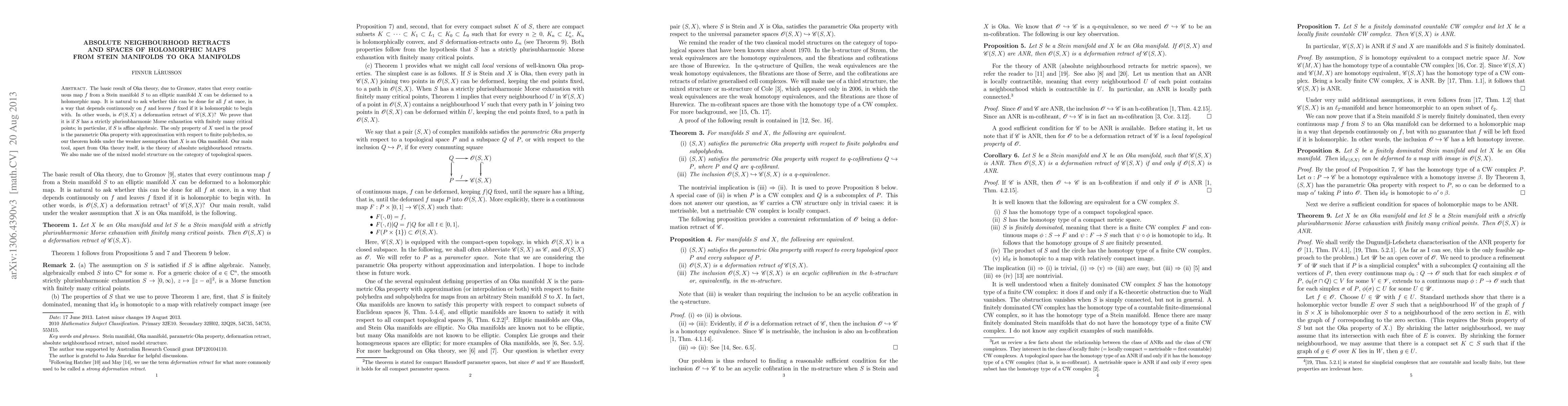 Summary: The paper proves that the space of holomorphic maps from a Stein manifold to an Oka manifold, equipped with a strictly plurisubharmonic Morse exhaustion, is a deformation retract of the space of continuous maps, using the theory of absolute neighbourhood retracts and the parametric Oka property.