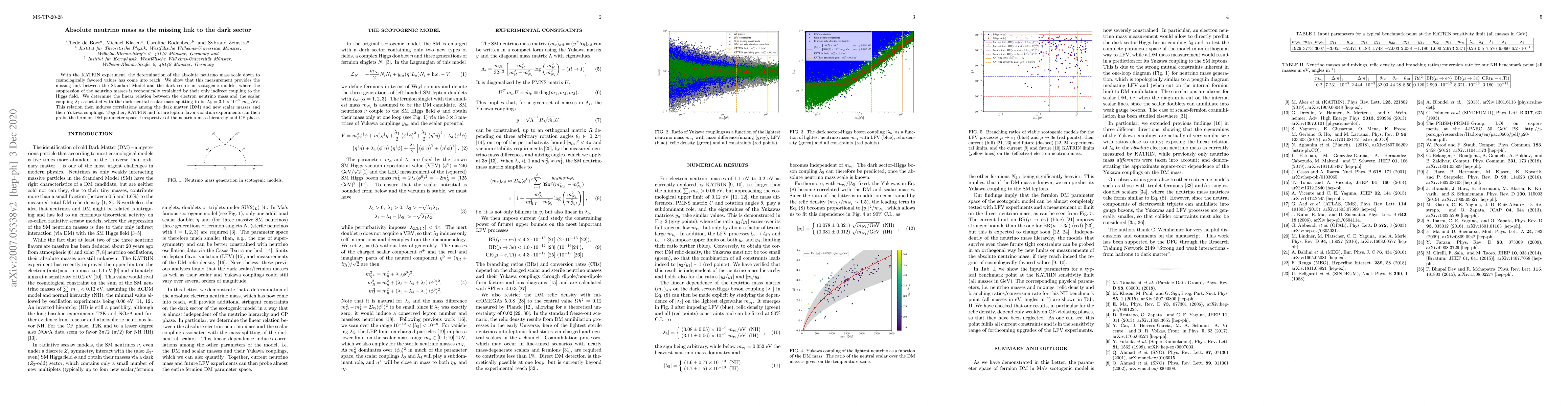 With the KATRIN experiment, the determination of the absolute neutrino mass scale down to cosmologically favored values has come into reach. We show that this measurement provides the missing link between the Standard Model and the dark sector in scotogenic models, where the suppression of the neutrino masses is economically explained by their only indirect coupling to the Higgs field. We determine the linear relation between the electron neutrino mass and the scalar coupling $\lambda_5$ associated with the dark neutral scalar mass splitting to be $\lambda_5=3.1\times10^{-9}\ m_{\nu_e}/$eV. This relation then induces correlations among the DM and new scalar masses and their Yukawa couplings. Together, KATRIN and future lepton flavor violation experiments can then probe the fermion DM parameter space, irrespective of the neutrino mass hierarchy and CP phase.