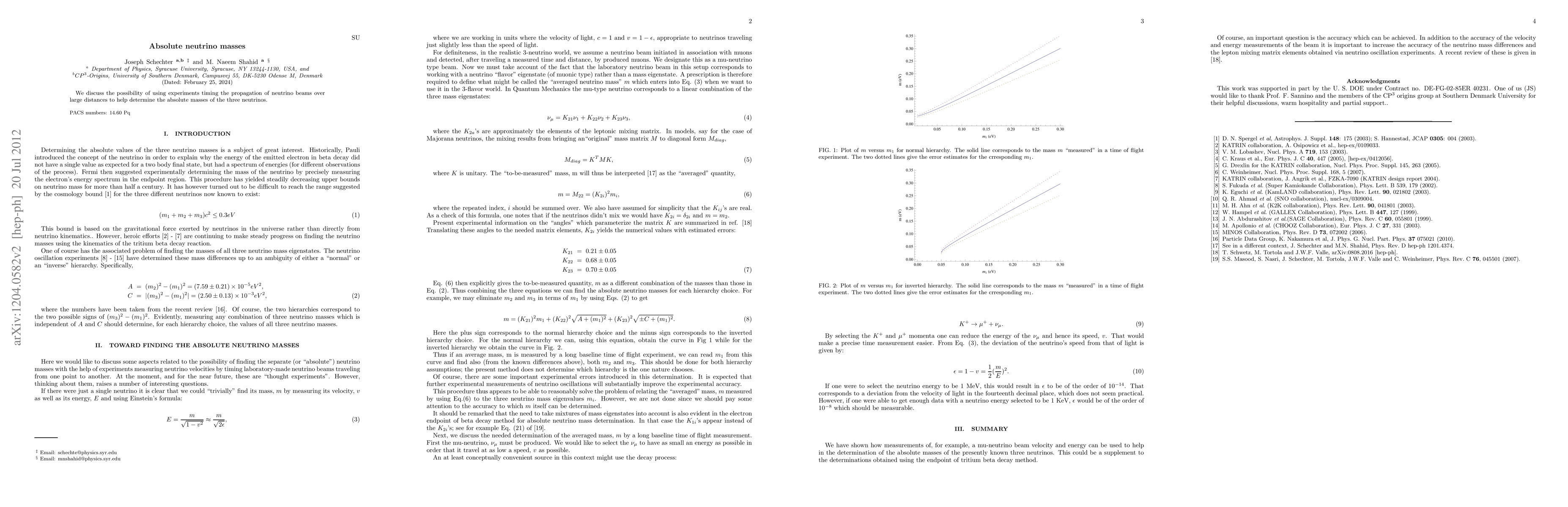 Summary: This paper explores the potential of long-baseline neutrino beam experiments to measure the absolute masses of the three neutrino types by timing their propagation over vast distances. The method could provide crucial insights into the mass hierarchy and neutrino properties.
