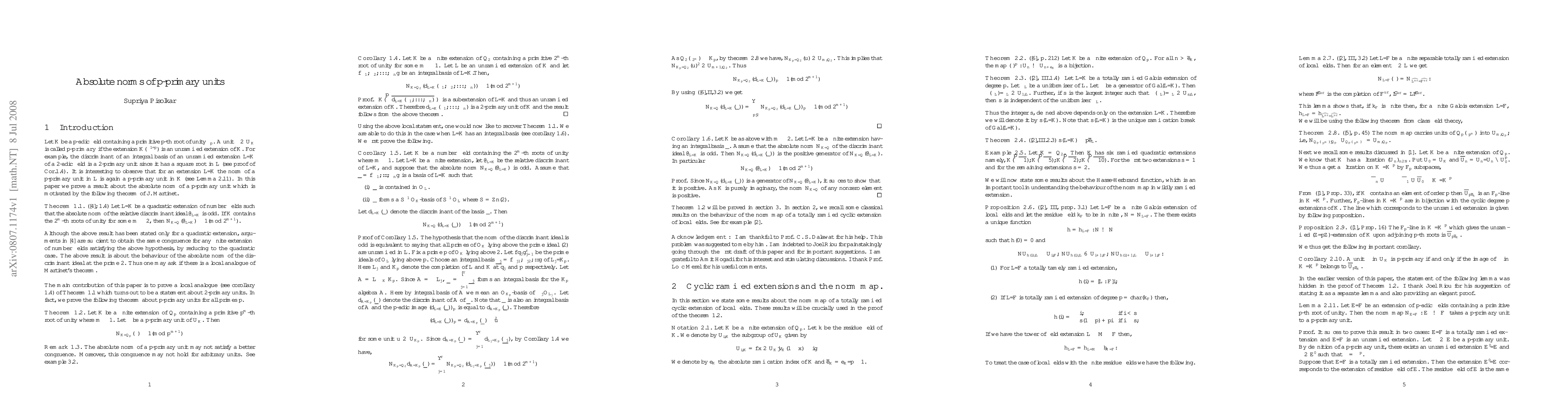Researchers prove a statement about absolute norms of p-primary units, with implications for number theory and 2-primary units, building on a local analogue of a theorem by J. Martinet.
