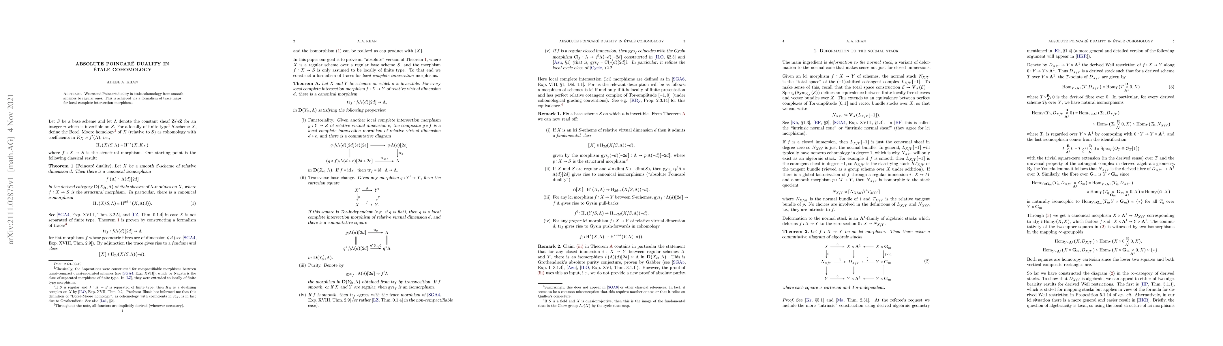 Summary: This paper extends Poincar\'e duality in \'etale cohomology to regular schemes, utilizing trace maps for local complete intersection morphisms to achieve the extension. The formalism provides a new framework for duality beyond smooth schemes.