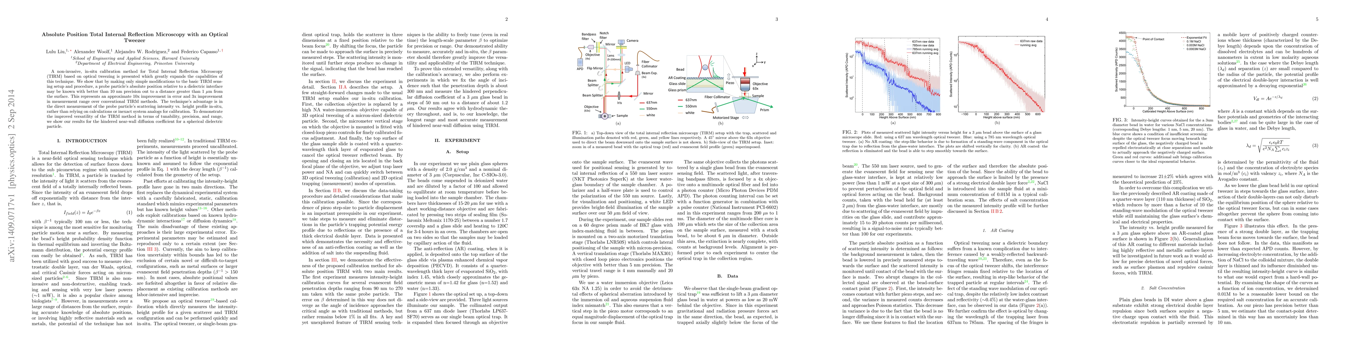 This paper introduces a novel calibration method for Total Internal Reflection Microscopy (TIRM) using optical tweezers, achieving better than 10 nm precision for probe particle positioning up to 1 µm from the surface, significantly improving conventional TIRM's error and measurement range. The method directly measures scattering intensity vs. height profiles, demonstrating enhanced tunability, precision, and range for studying particle diffusion near interfaces.