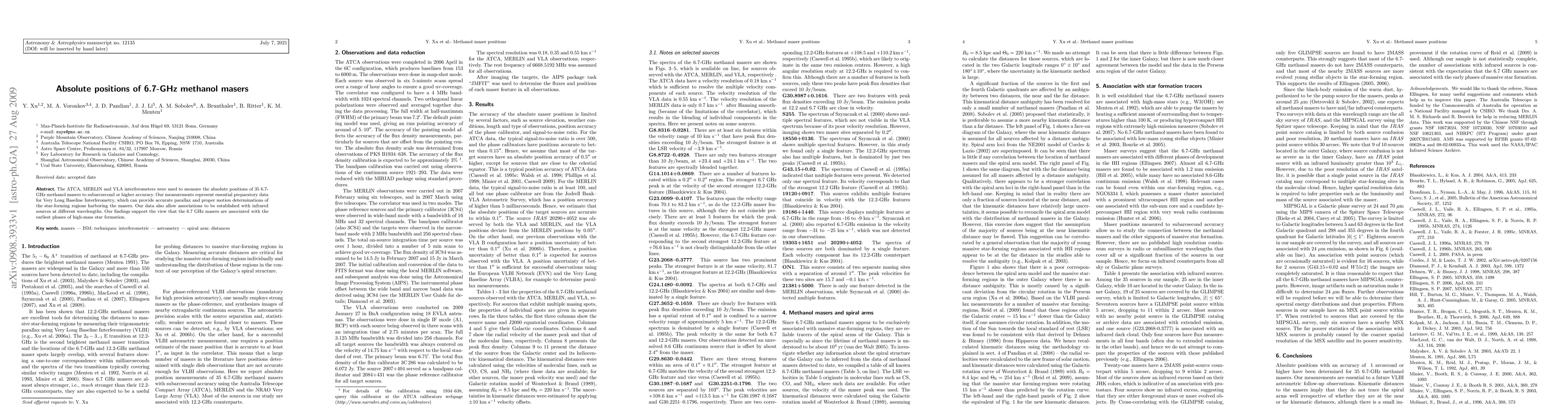 This study uses ATCA, MERLIN, and VLA interferometers to precisely measure the positions of 35 6.7 GHz methanol masers, providing crucial data for future Very Long Baseline Interferometry studies. These measurements enable accurate parallax and proper motion determinations for star-forming regions and support the association of 6.7 GHz masers with early high-mass star formation.