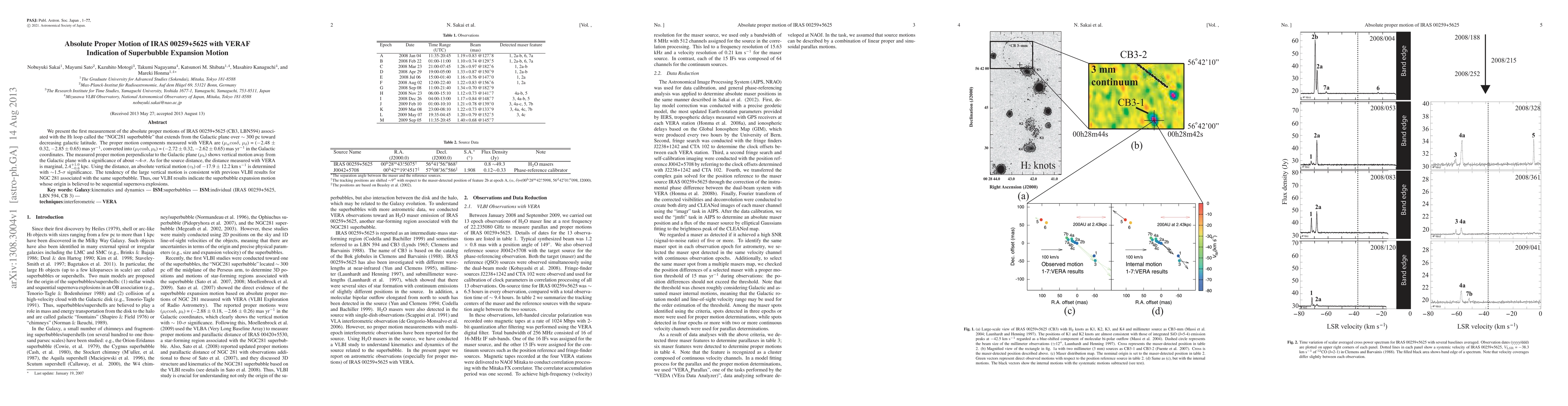 We present the first measurement of the absolute proper motions of IRAS 00259+5625 (CB3, LBN594) associated with the HI loop called the "NGC281 superbubble" that extends from the Galactic plane over ~300 pc toward decreasing galactic latitude. The proper motion components measured with VERA are (mu_alpha cos(delta), mu_delta) = (-2.48 +/- 0.32, -2.85 +/- 0.65) mas yr^{-1}, converted into (mu_l cos(b), mu_b) = (-2.72 +/- 0.32, -2.62 +/- 0.65) mas yr^{-1} in the Galactic coordinates. The measured proper motion perpendicular to the Galactic plane (mu_b) shows vertical motion away from the Galactic plane with a significance of about ~4-sigma. As for the source distance, the distance measured with VERA is marginal, 2.4^{+1.0}_{-0.6} kpc. Using the distance, an absolute vertical motion (v_{b}) of -17.9 +/- 12.2 km s^{-1} is determined with ~1.5-sigma significance. The tendency of the large vertical motion is consistent with previous VLBI results for NGC 281 associated with the same superbubble. Thus, our VLBI results indicate the superbubble expansion motion whose origin is believed to be sequential supernova explosions.