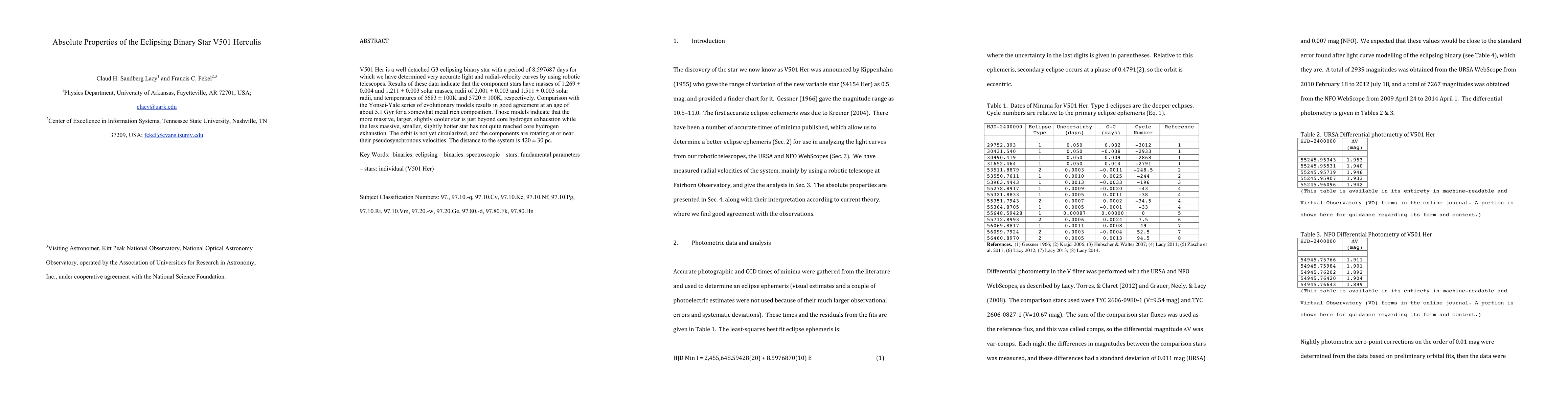 V501 Her is a well detached G3 eclipsing binary star with a period of 8.597687 days for which we have determined very accurate light and radial-velocity curves by using robotic telescopes. Results of these data indicate that the component stars have masses of 1.269 +/- 0.004 and 1.211 +/- 0.003 solar masses, radii of 2.001 +/- 0.003 and 1.511 +/- 0.003 solar radii, and temperatures of 5683 +/- 100K and 5720 +/- 100K, respectively. Comparison with the Yonsei-Yale series of evolutionary models results in good agreement at an age of about 5.1 Gyr for a somewhat metal rich composition. Those models indicate that the more massive, larger, slightly cooler star is just beyond core hydrogen exhaustion while the less massive, smaller, slightly hotter star has not quite reached core hydrogen exhaustion. The orbit is not yet circularized, and the components are rotating at or near their pseudosynchronous velocities. The distance to the system is 420 +/- 30 pc.