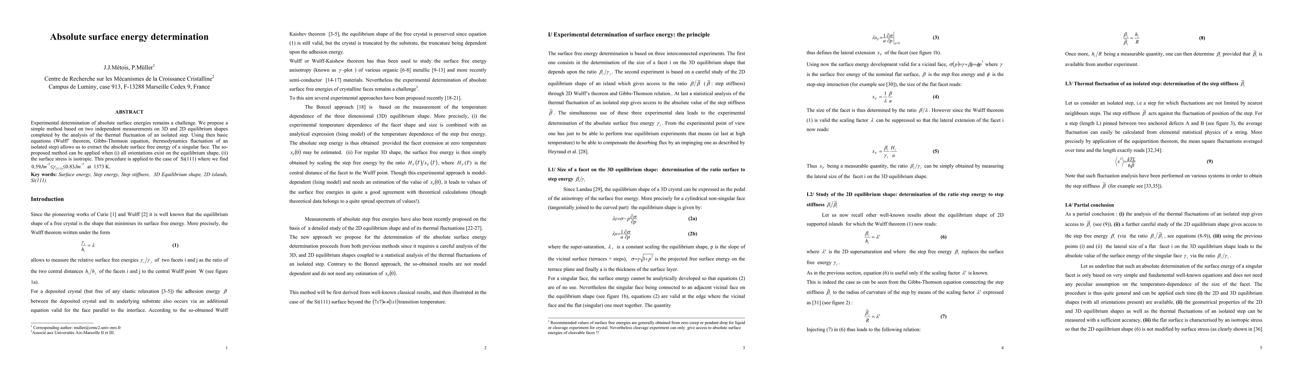 Experimental determination of absolute surface energies remains a challenge. We propose a simple method based on two independent measurements on 3D and 2D equilibrium shapes completed by the analysis of the thermal fluctuation of an isolated step. Using then basic equations (Wulff' theorem, Gibbs-Thomson equation, thermodynamics fluctuation of an isolated step) allows us to extract the absolute surface free energy of a singular face. The so-proposed method can be applied when (i) all orientations exists on the equilibrium shape, (ii) the surface stress is isotropic. This procedure is applied to the case of Si(111) where we find a value between 0.59 Jm-2 and 0.83 Jm-2 at 1373 K.
