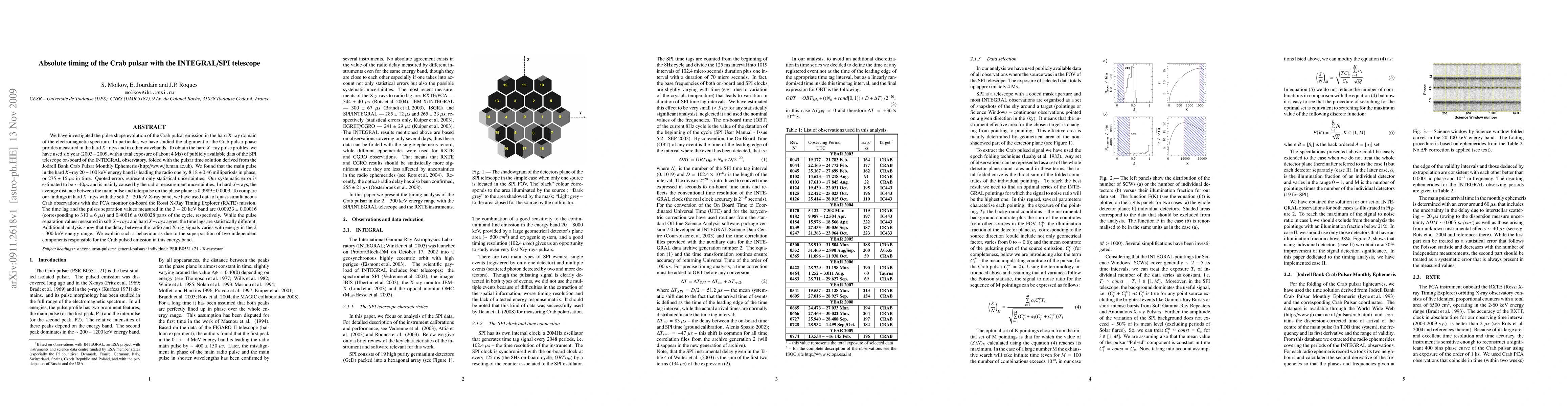 Researchers studied the timing of the Crab pulsar's emission in hard X-rays using 6 years of data from the INTEGRAL/SPI telescope, finding a lead time difference of $275 ext{ iny µ}s$ between hard X-rays and radio pulses.