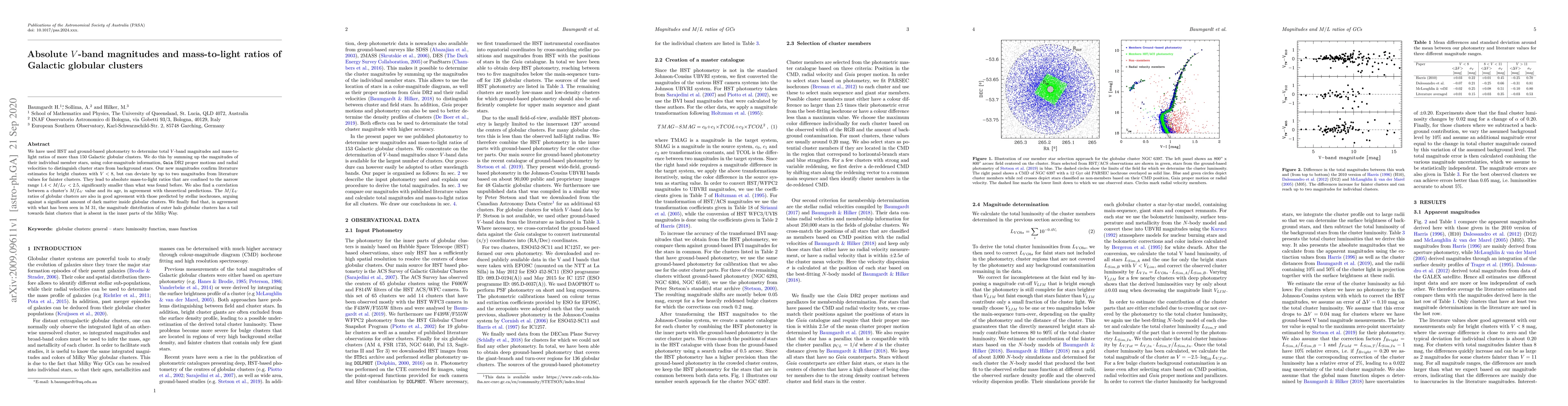 This study uses HST and ground-based photometry to determine the total $V$-band magnitudes and mass-to-light ratios of over 150 Galactic globular clusters, revealing M/L_V ratios in the range 1.4<M/L_V<2.5, significantly smaller than previous estimates, and confirming a correlation between M/L_V and cluster age.