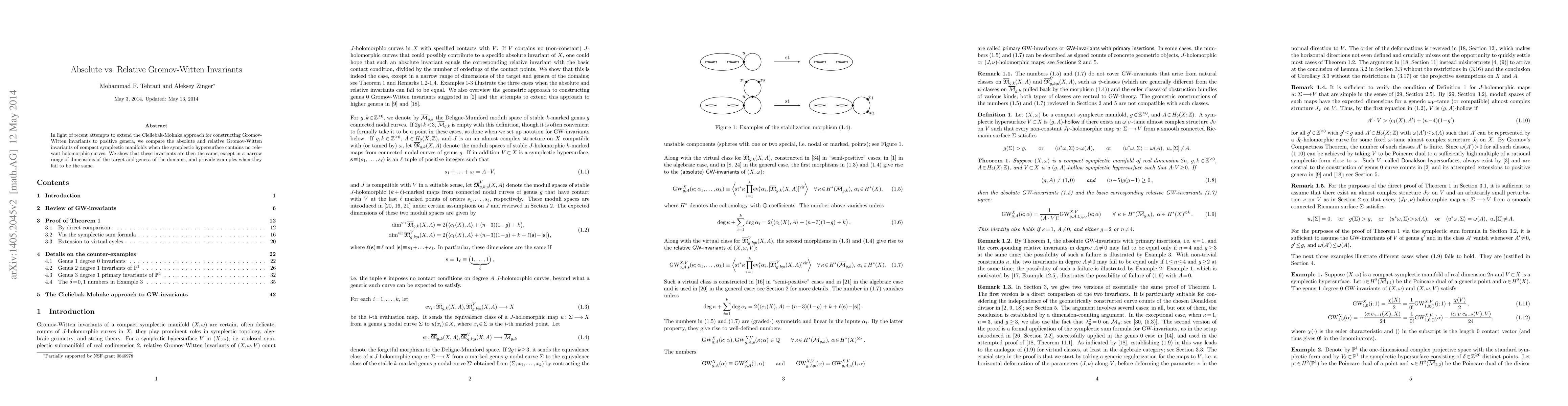 This paper compares absolute and relative Gromov-Witten invariants for compact symplectic manifolds, demonstrating that they coincide except in a specific dimensional range, and provides examples where they differ.