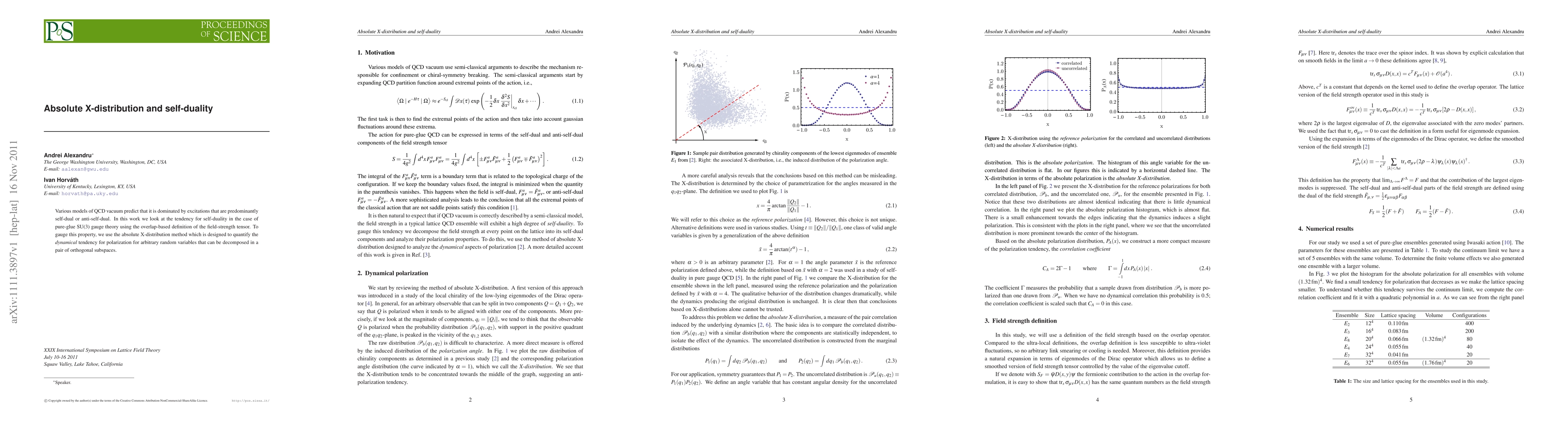 Various models of QCD vacuum predict that it is dominated by excitations that are predominantly self-dual or anti-self-dual. In this work we look at the tendency for self-duality in the case of pure-glue SU(3) gauge theory using the overlap-based definition of the field-strength tensor. To gauge this property, we use the absolute X-distribution method which is designed to quantify the dynamical tendency for polarization for arbitrary random variables that can be decomposed in a pair of orthogonal subspaces.
