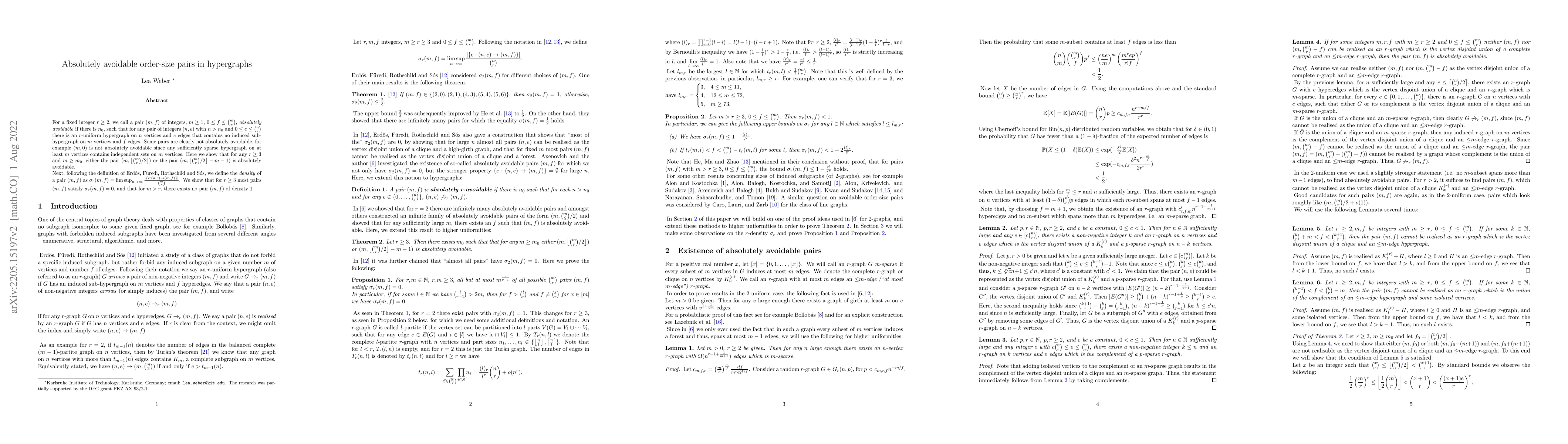 The paper investigates absolutely avoidable order-size pairs in hypergraphs, utilizing concepts like density and extremal graph theory to prove avoidability for certain pairs.