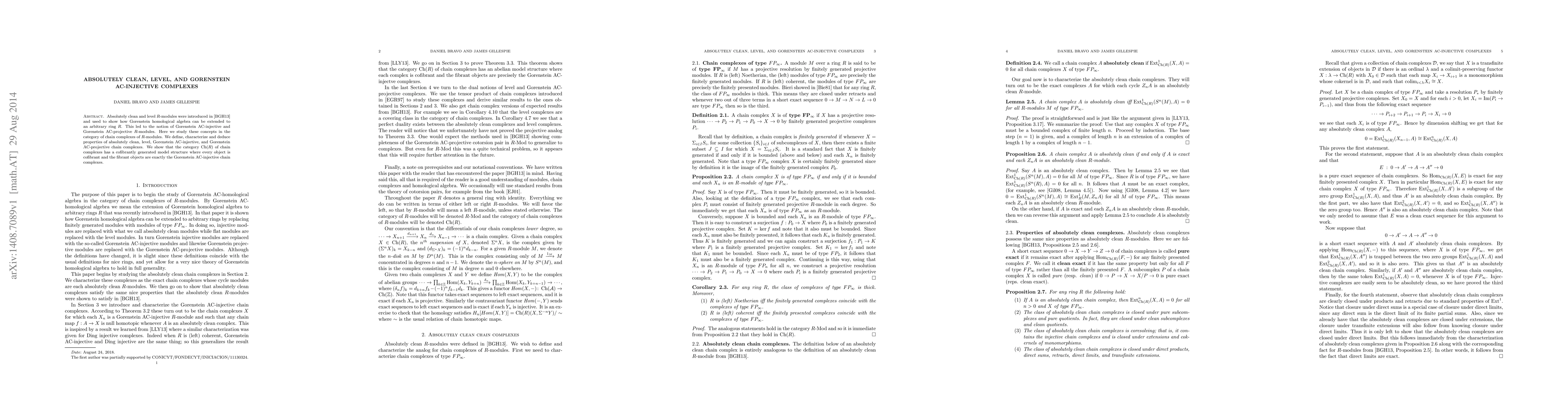 This paper introduces and explores the concepts of absolutely clean, level, Gorenstein AC-injective, and AC-projective chain complexes within the category of chain complexes of $R$-modules, establishing a cofibrantly generated model structure in which all objects are cofibrant and the fibrant objects are Gorenstein AC-injective complexes.