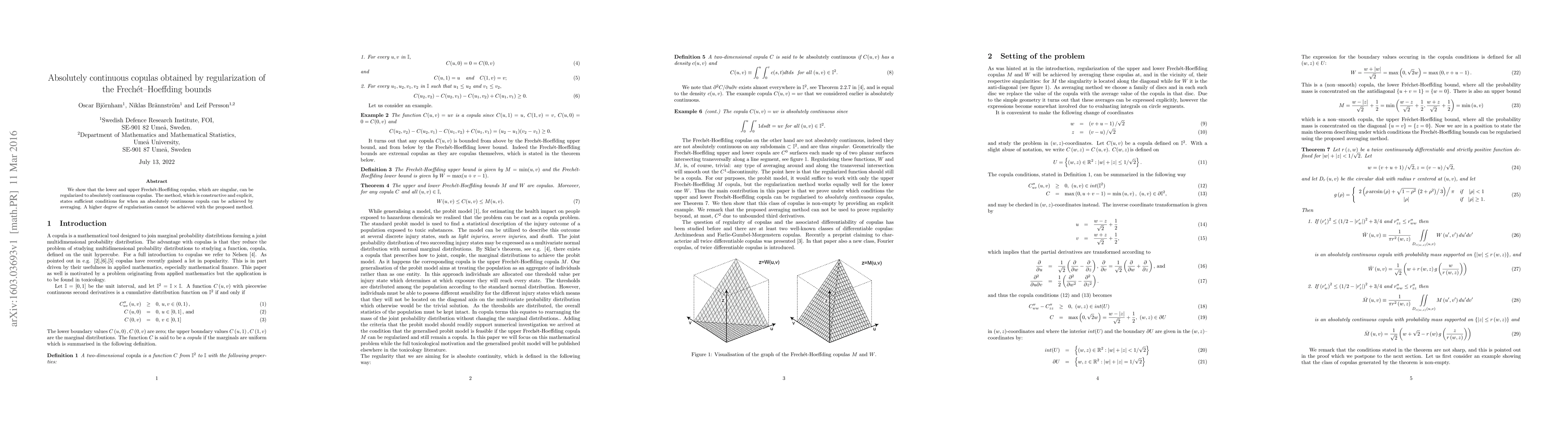 We show that the lower and upper Frech\'{e}t-Hoeffding copulas, which are singular, can be regularized to absolutely continuous copulas. The method, which is constructive and explicit, states sufficient conditions for when an absolutely continuous copula can be achieved by averaging. A higher degree of regularisation cannot be achieved with the proposed method.