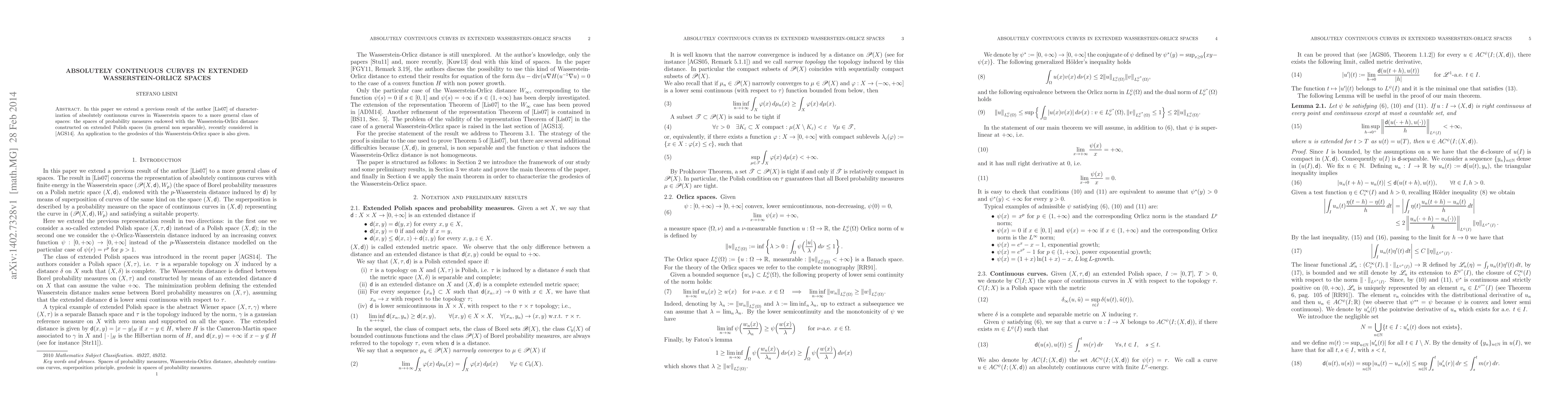 This paper extends the characterization of absolutely continuous curves in Wasserstein spaces to Wasserstein-Orlicz spaces defined on extended Polish spaces, and applies the results to the study of geodesics in these spaces.