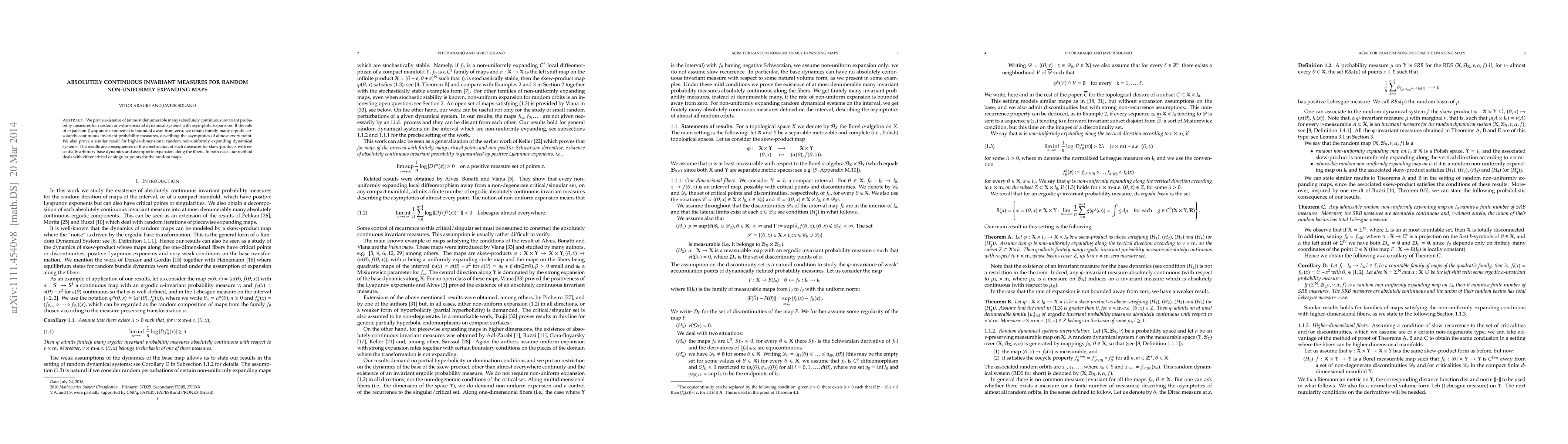 This paper proves the existence of absolutely continuous invariant probability measures for random non-uniformly expanding maps, showing that when Lyapunov exponents are bounded away from zero, finitely many ergodic measures emerge. The method extends to higher dimensions and handles critical or singular points in the random dynamical systems.