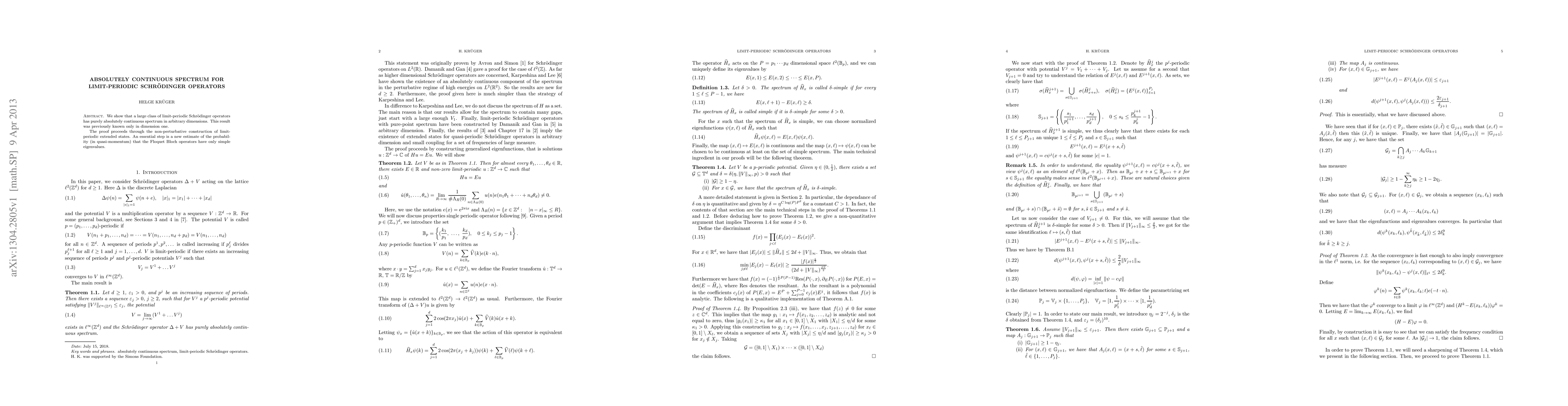 This paper demonstrates that a broad category of limit-periodic Schrödinger operators possess purely absolutely continuous spectrum across all dimensions, extending a previously known result from dimension one. The proof leverages the non-perturbative construction of limit-periodic extended states and introduces a novel estimate on the probability of simple Floquet Bloch operator eigenvalues.